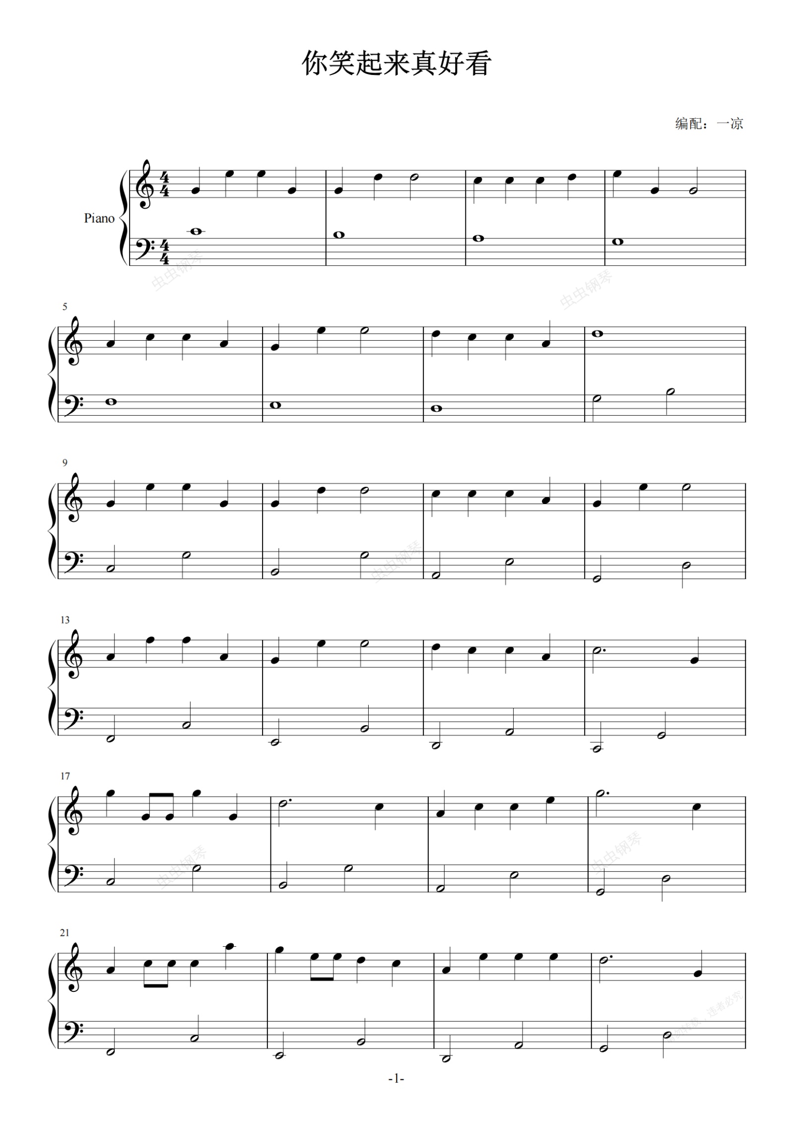 钢琴谱:你笑起来真好看 非常简单好听版