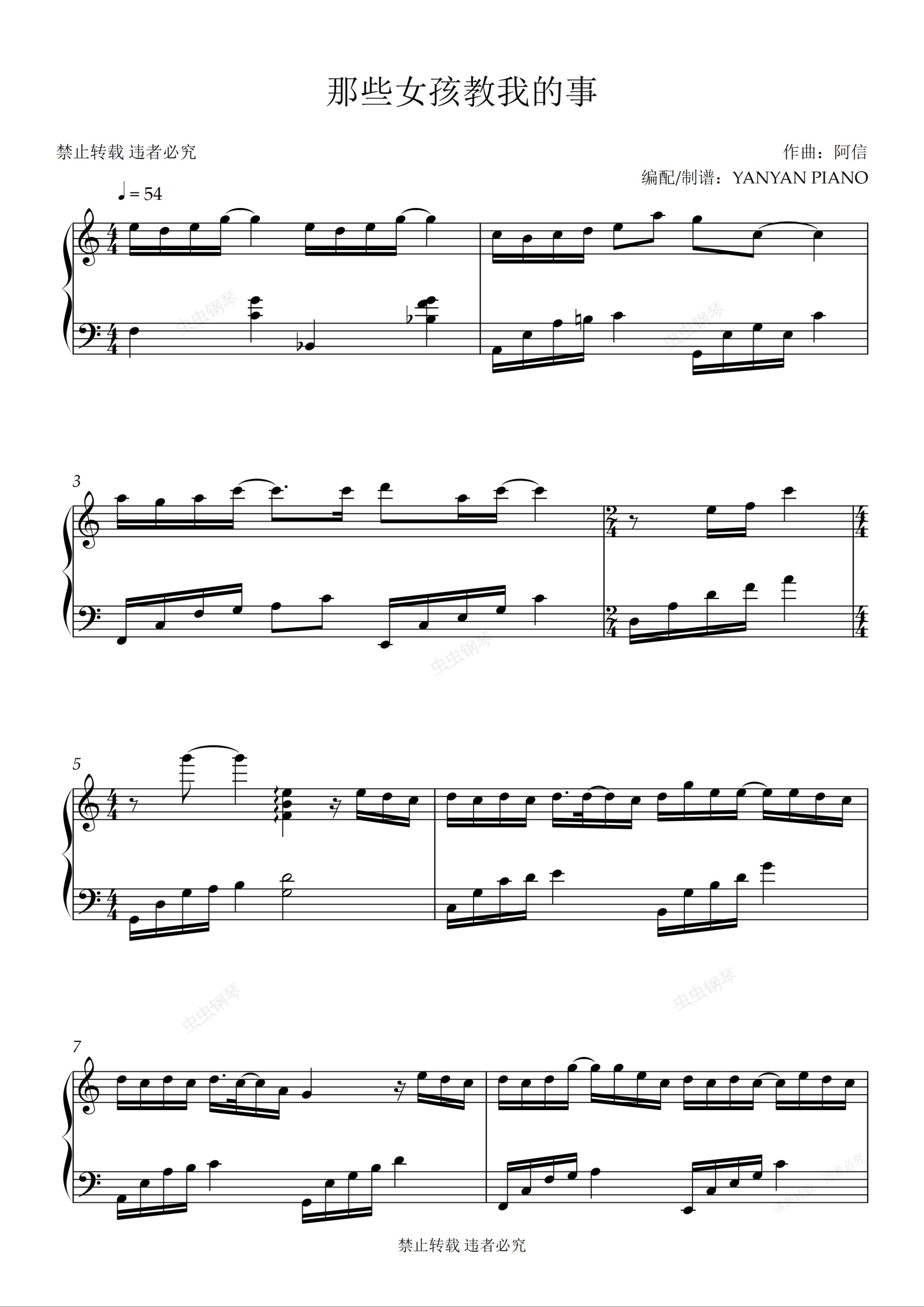 钢琴谱:好听易弹【那些女孩教我的事】品冠