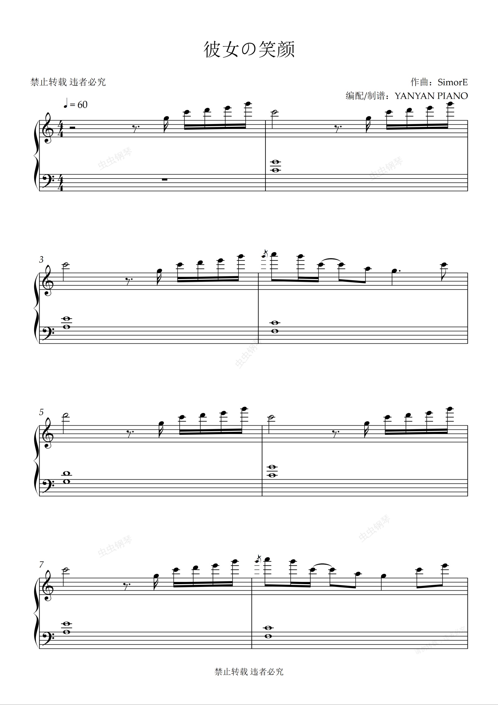 钢琴谱:好听易弹【彼女の笑颜】SimorE