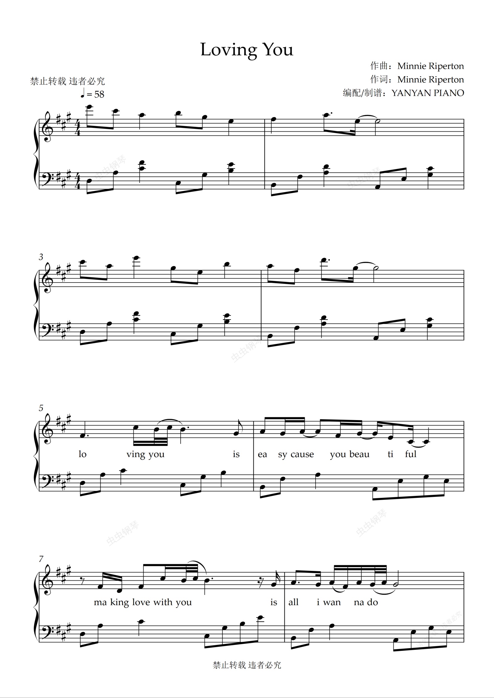 钢琴谱:好听易弹【Loving you】Minnie Riperton