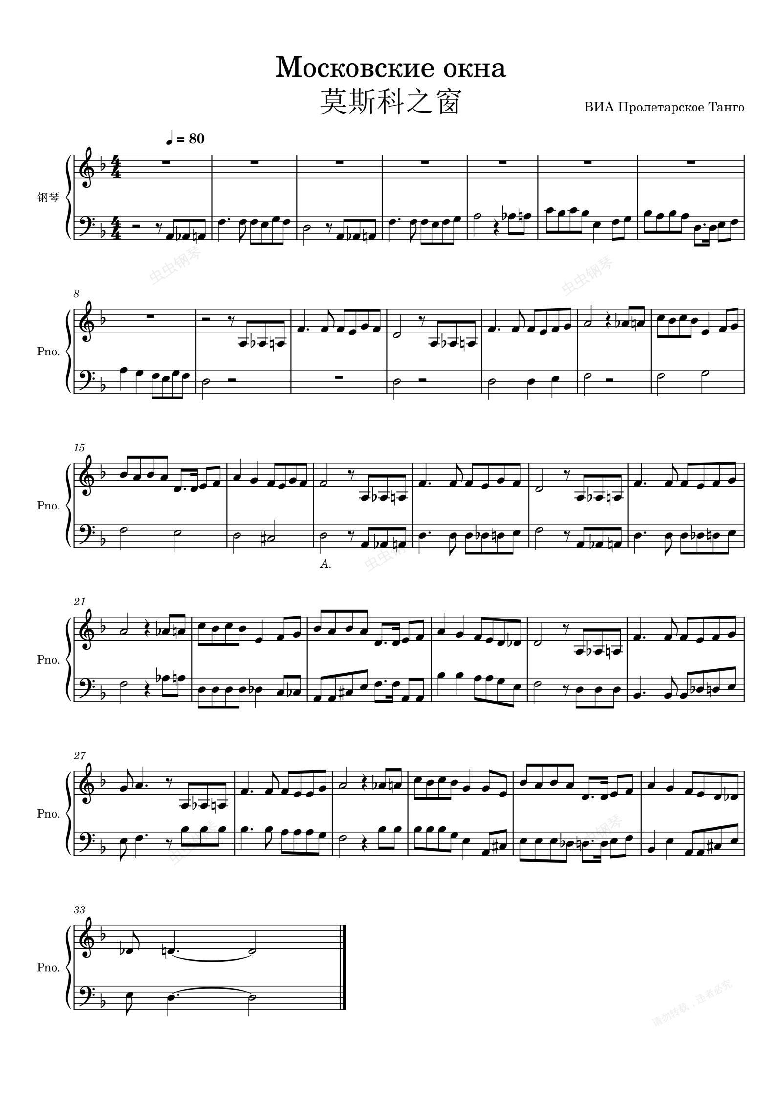 钢琴谱:莫斯科之窗 Moscow Windows 苏联民歌 Московские окна