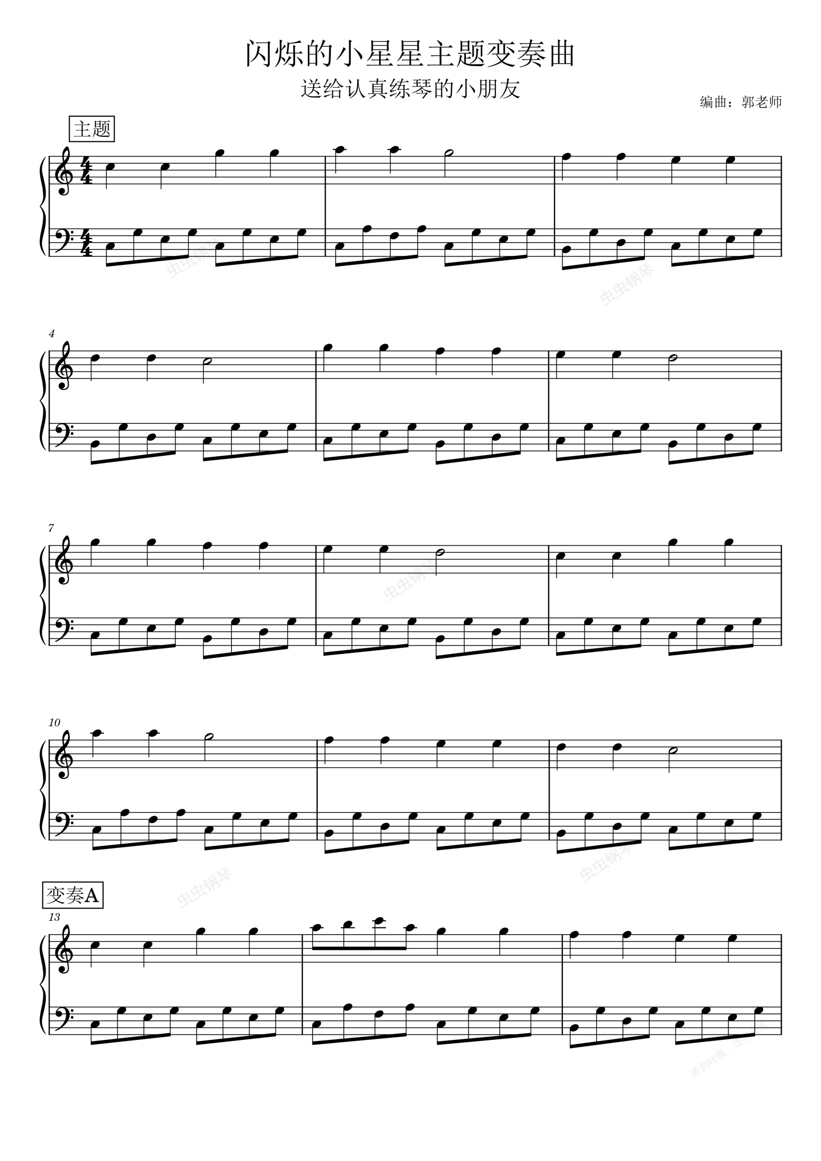 钢琴谱:闪烁的小星星主题变奏