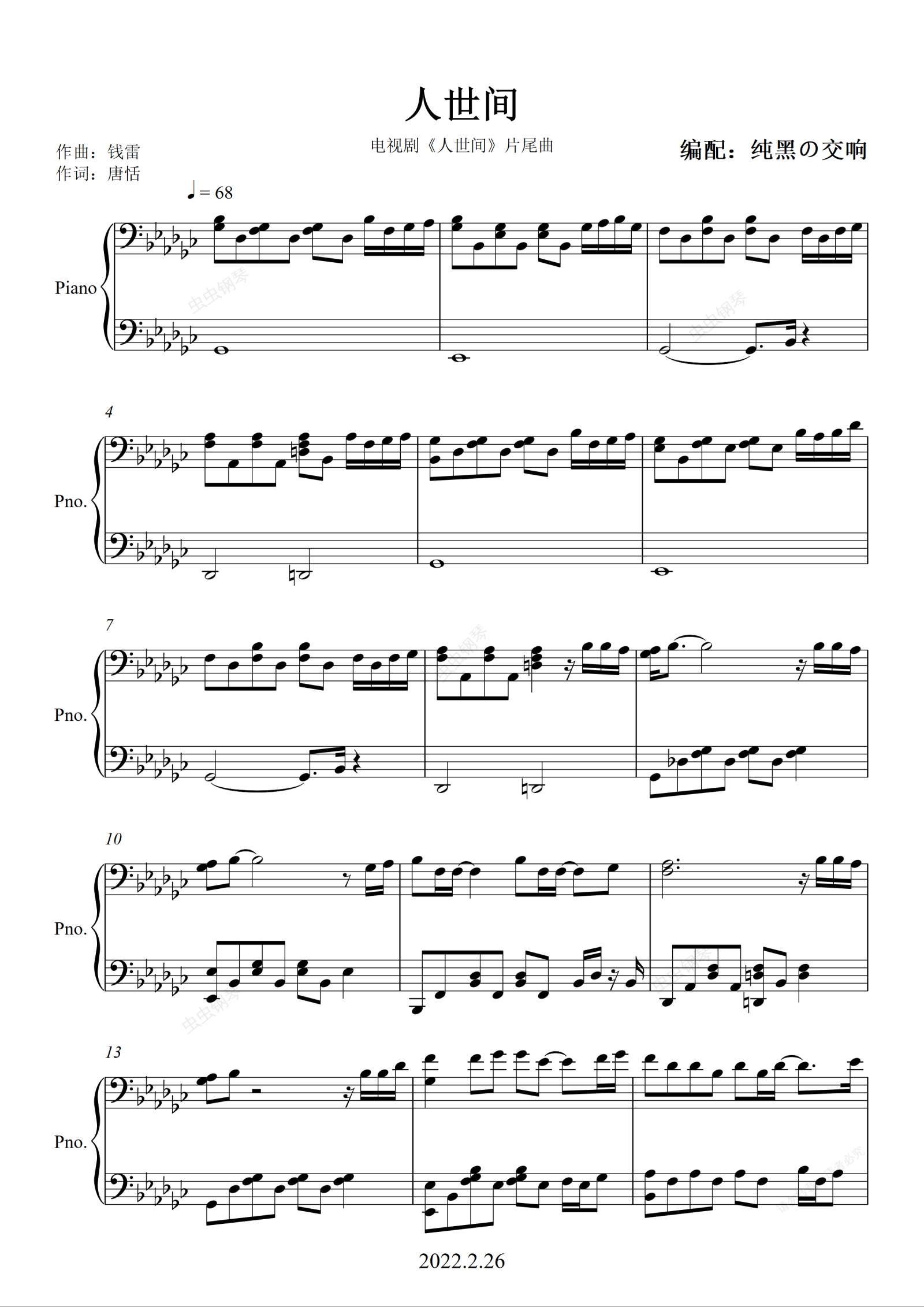 钢琴谱:人世间 - 电视剧《人世间》片尾曲