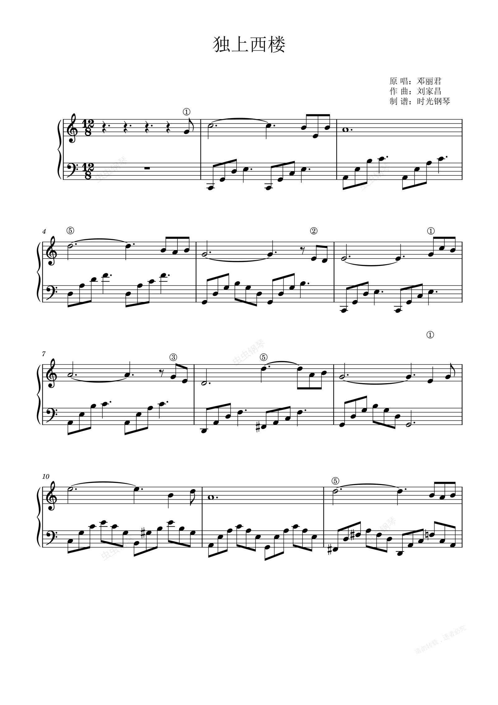 钢琴谱:独上西楼