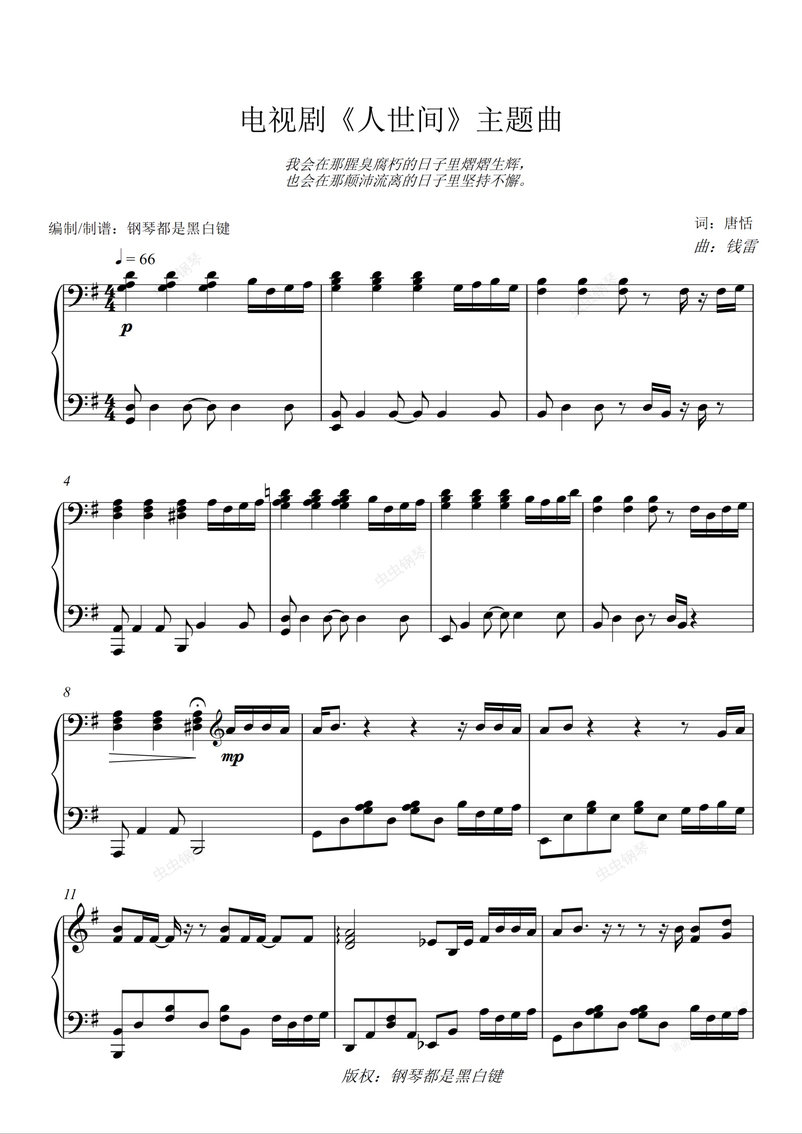 钢琴谱:电视剧《人世间》主题曲 人世间 [精编+原曲和声 完美演奏抒情版]