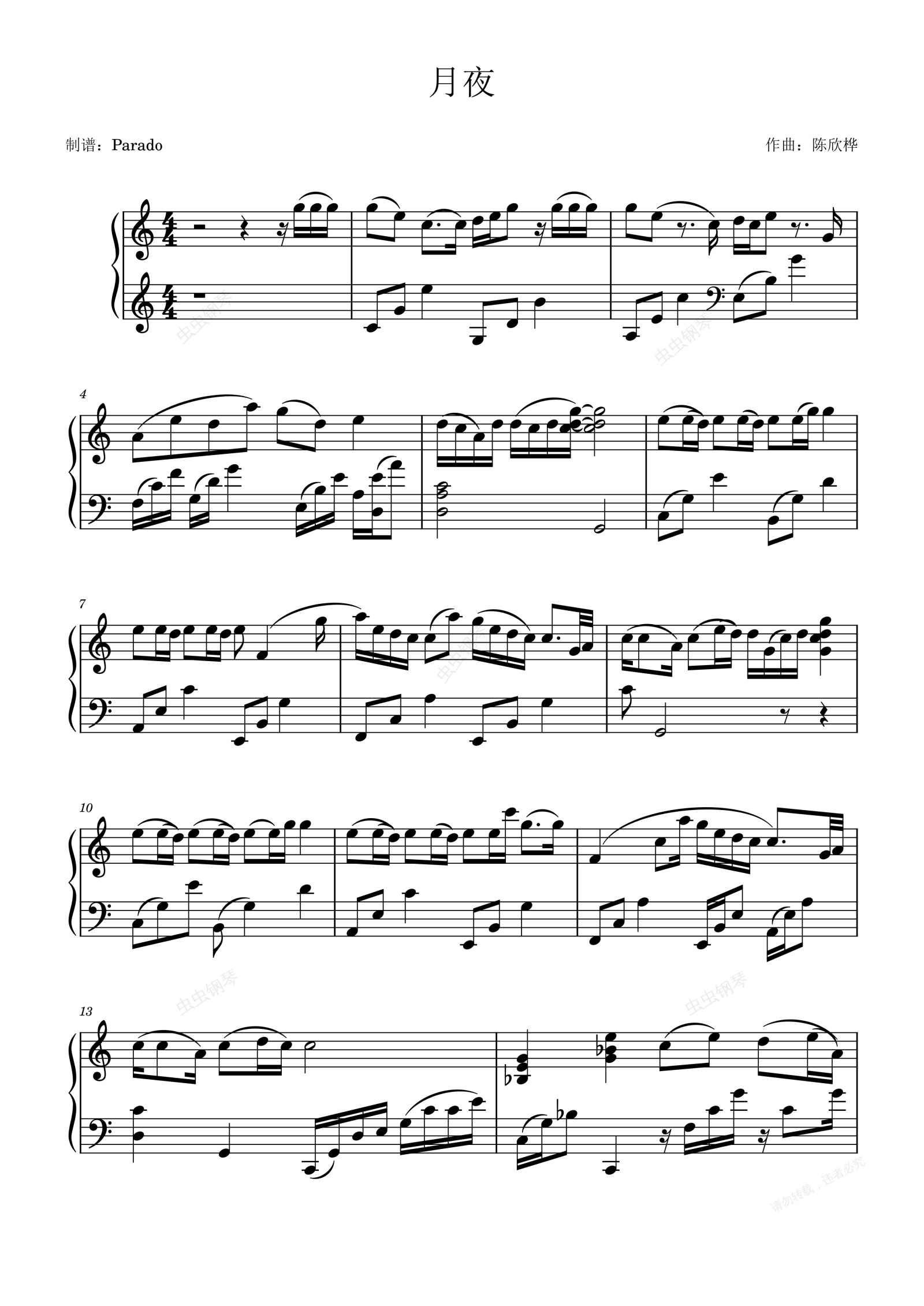 钢琴谱:《月夜》双笙 (陈元汐) /妖扬《传闻中的陈芊芊》片头曲