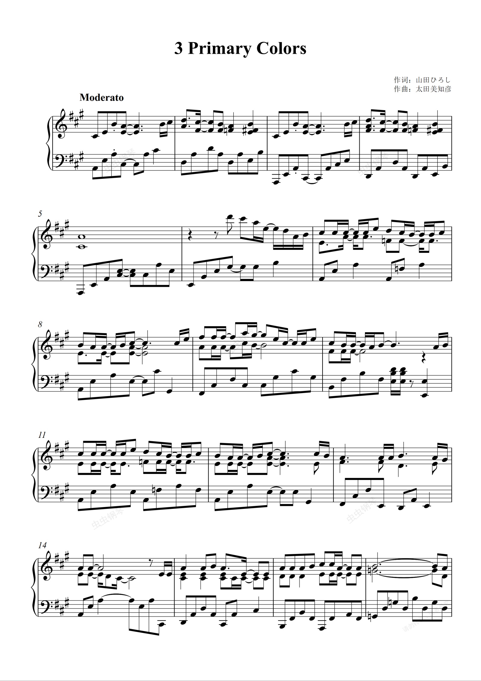 钢琴谱:《3 primary colors》- 数码宝贝3插曲 独奏谱