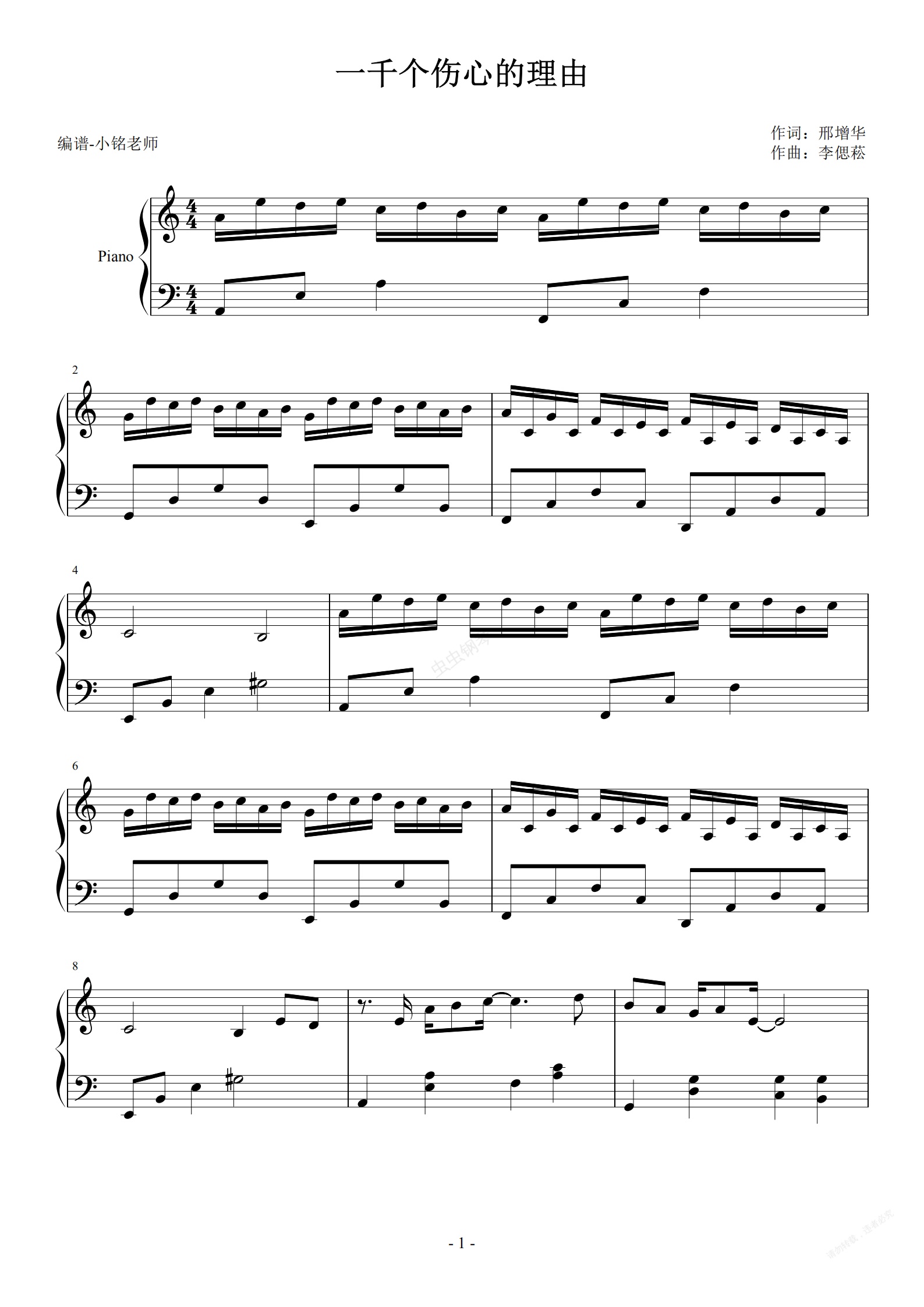 钢琴谱:一千个伤心的理由【简易 怀旧】