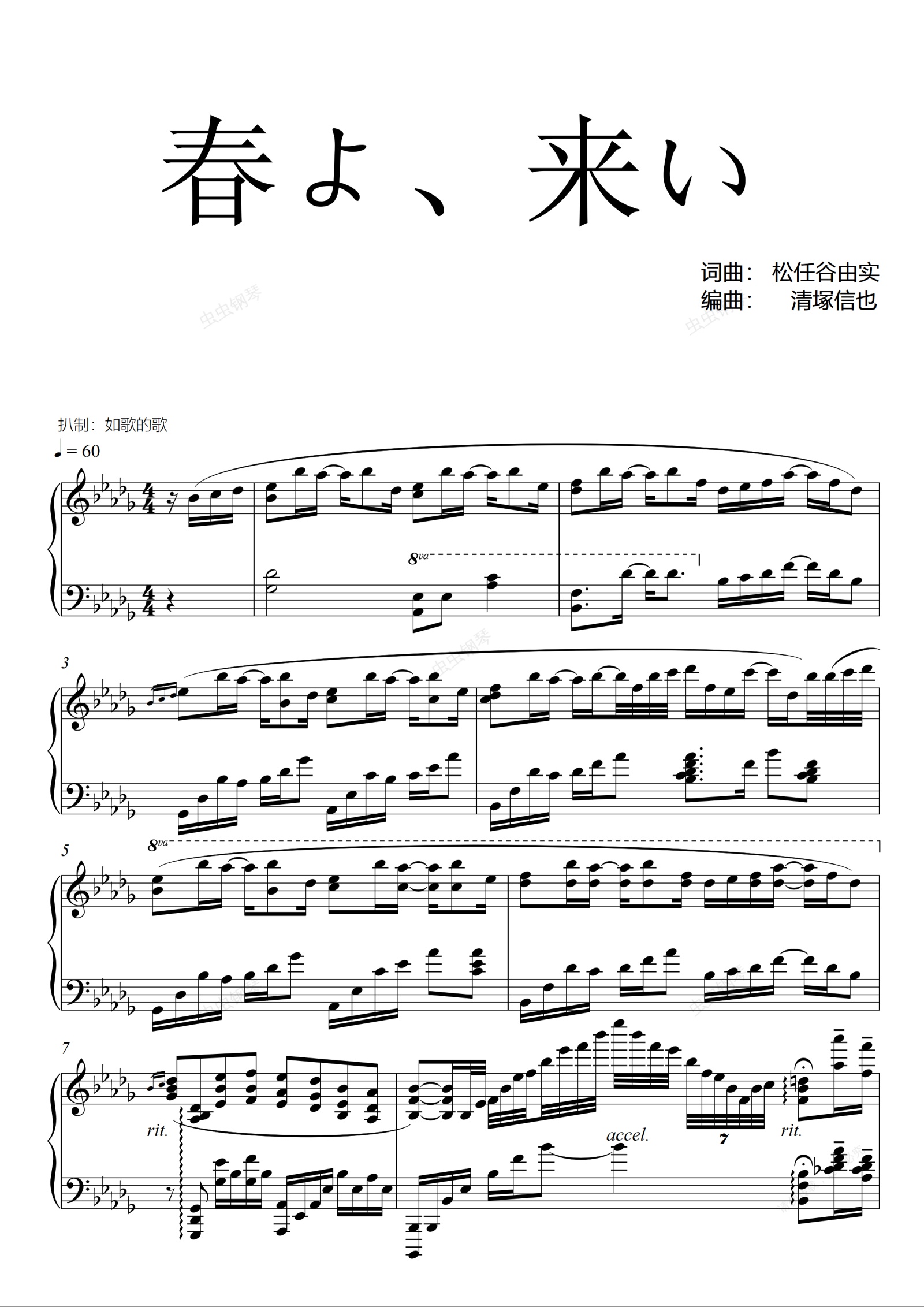 钢琴谱:春よ、来い清塚信也羽生结弦定制版表演滑唯美音乐