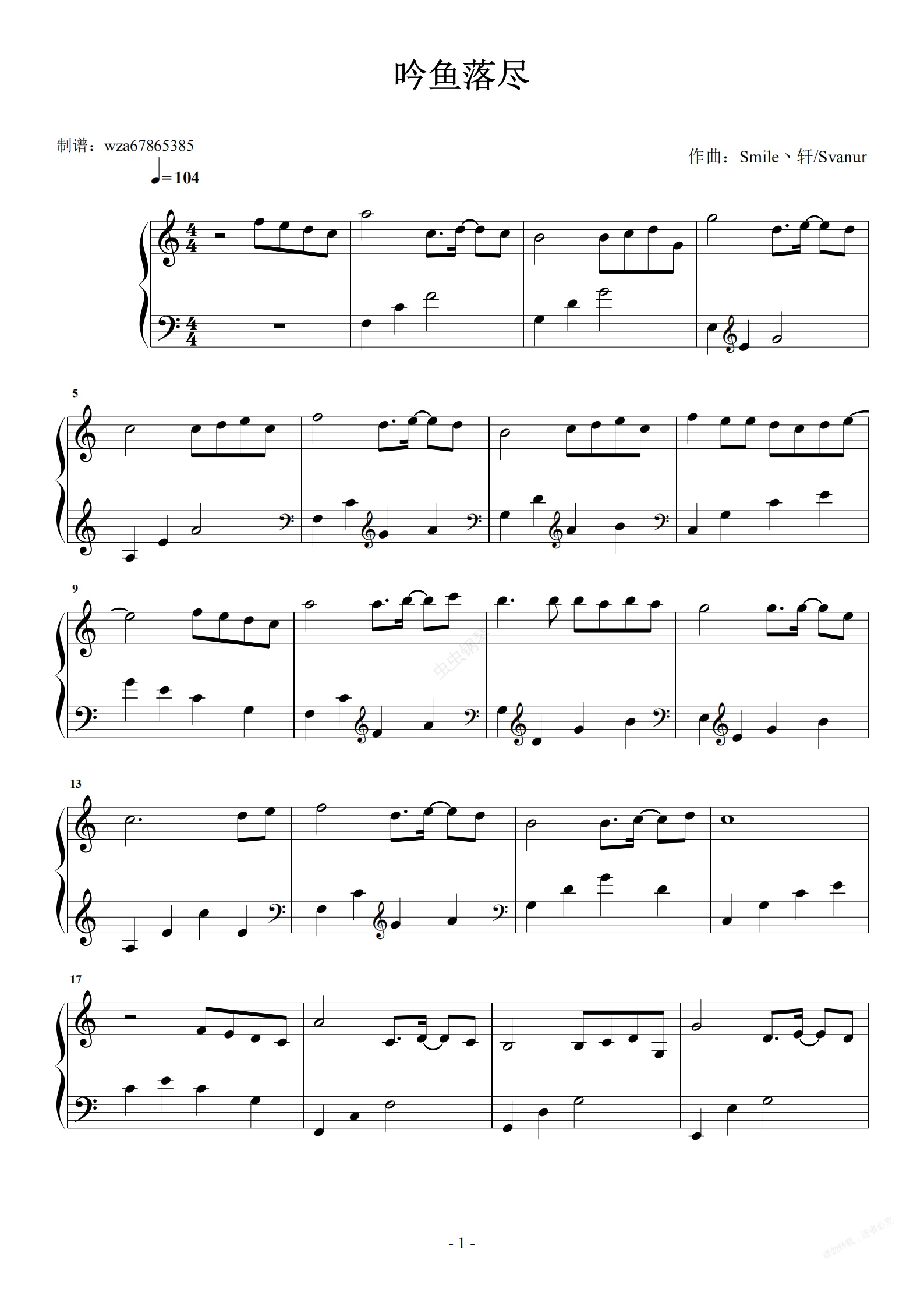 钢琴谱:吟鱼落尽