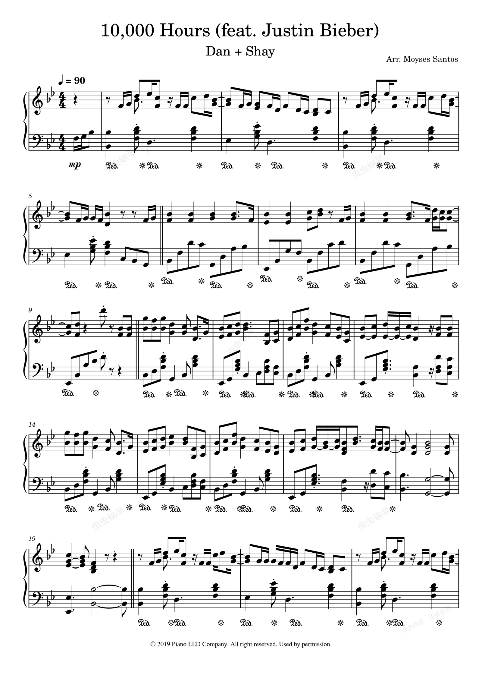 钢琴谱:10,000 Hours Dan + Shay / Justin Bieber