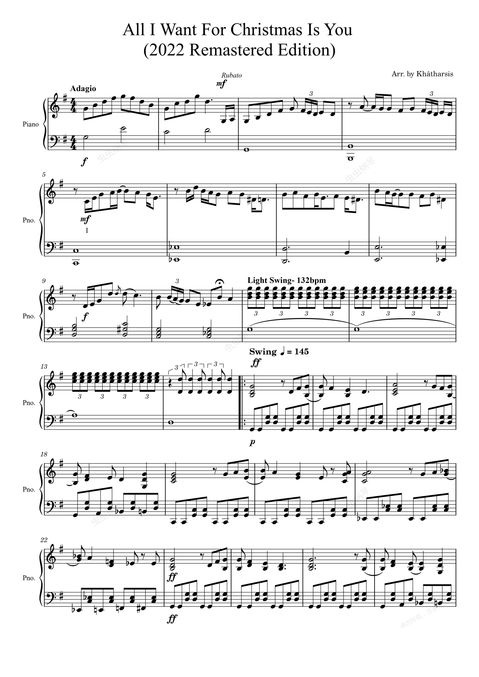 钢琴谱:All I Want For Christmas Is You 圣诞歌曲