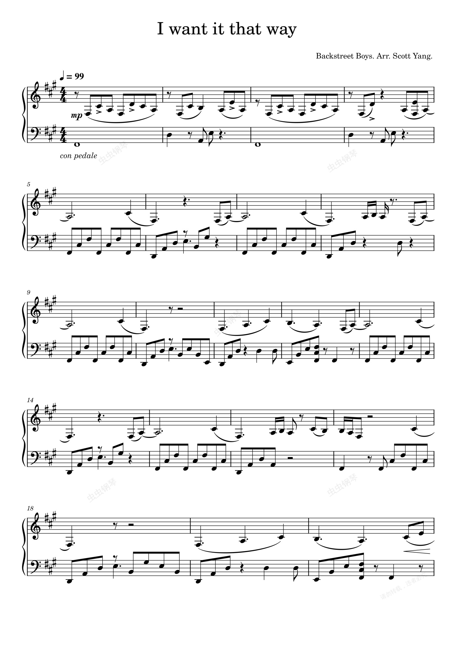 钢琴谱:后街男孩 I Want It That Way-Backstreet Boys