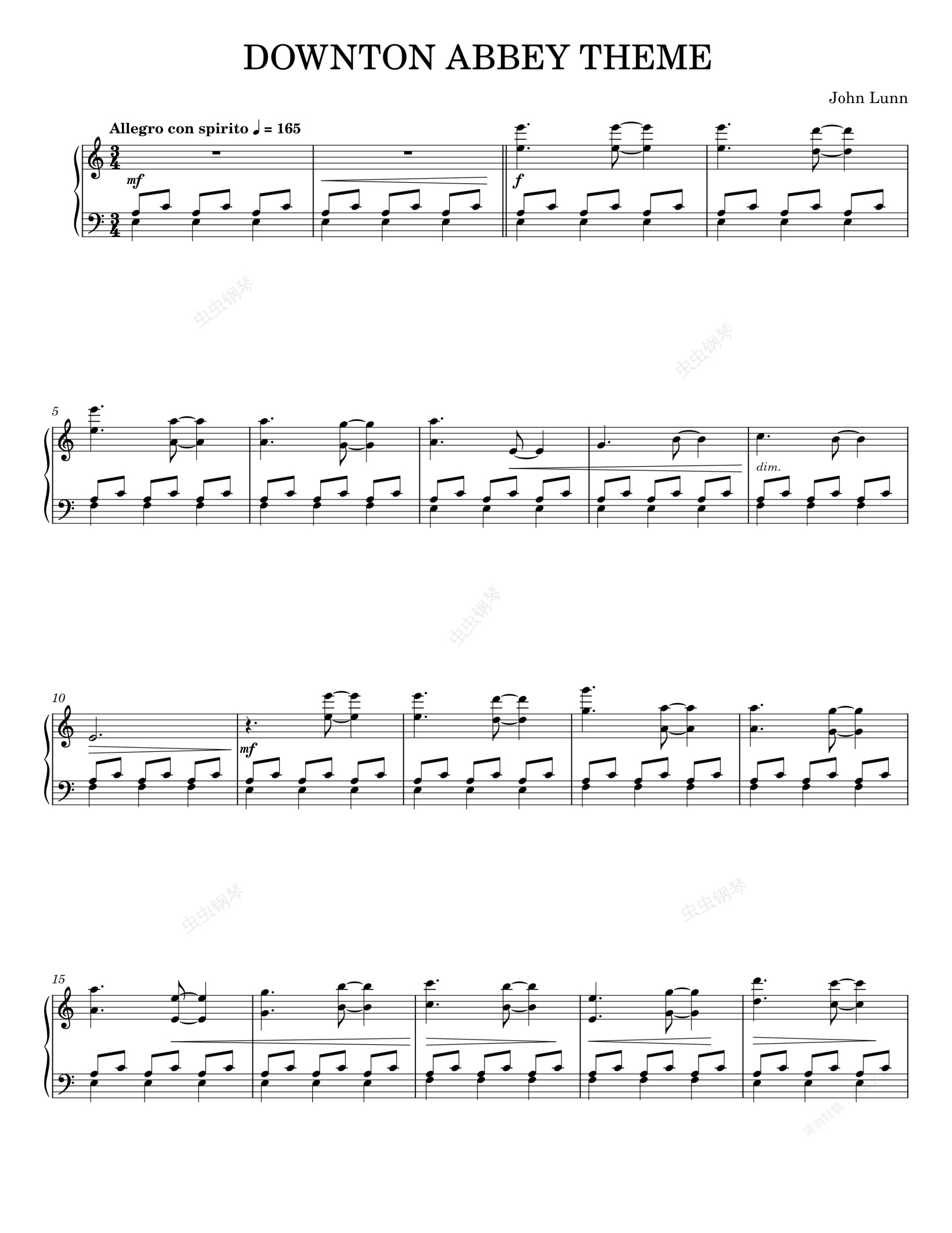 钢琴谱:Downton Abbey Theme 唐顿庄园 电视剧