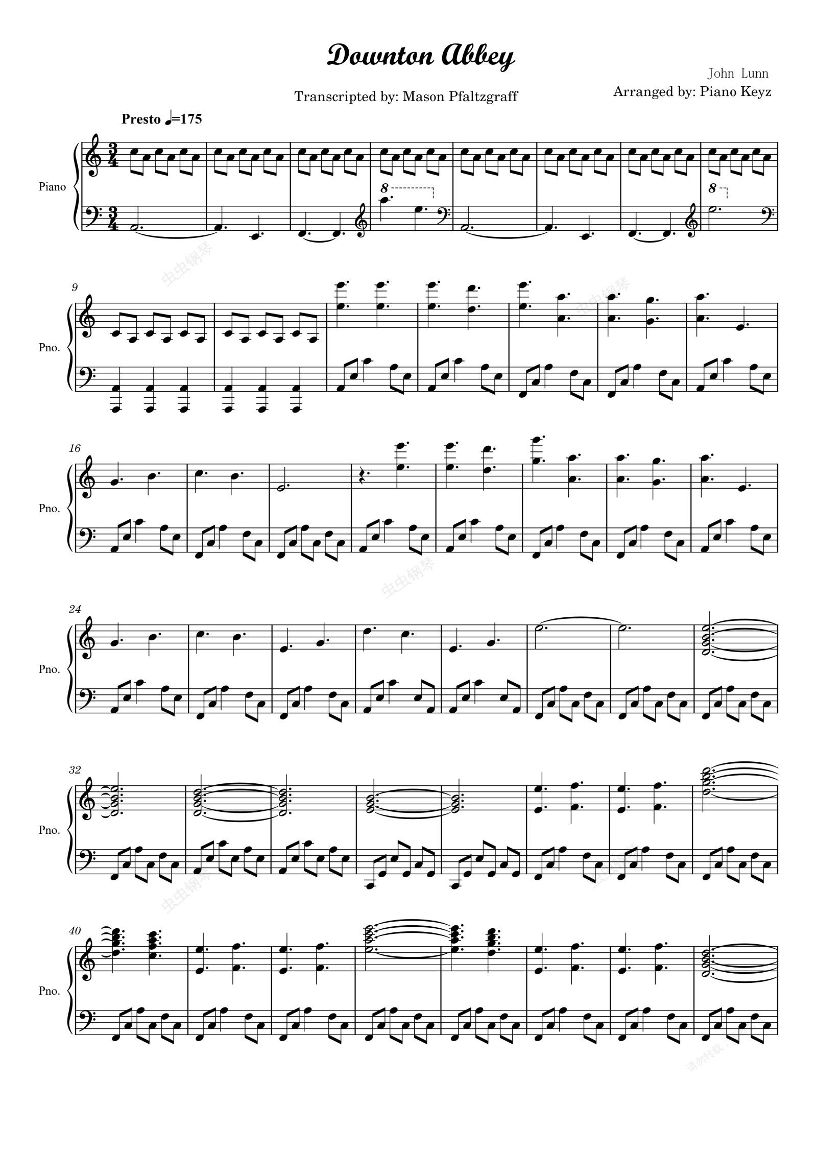 钢琴谱:唐顿庄园 电视剧 Downton Abbey