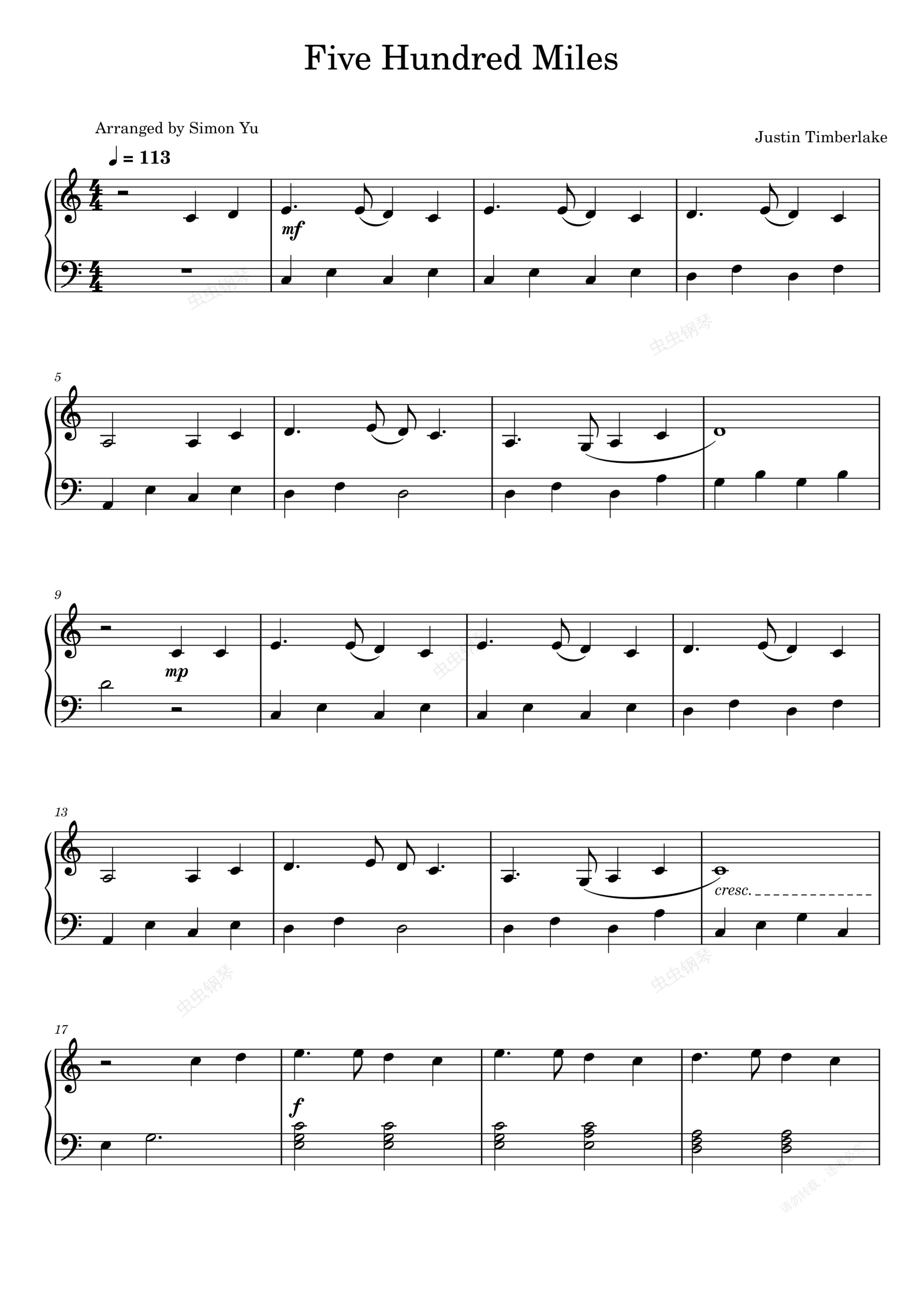 钢琴谱:Five Hundred Miles - Justin Timberlake