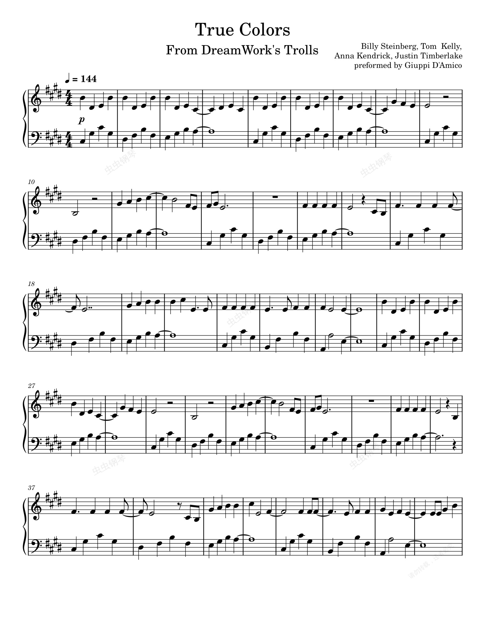 钢琴谱:True Colors-Anna Kendrick / Justin Timberlake