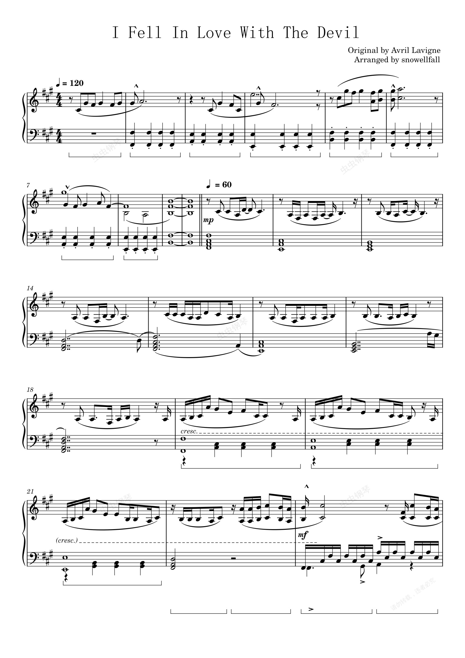 钢琴谱:I Fell In Love With The Devil-Avril Lavigne