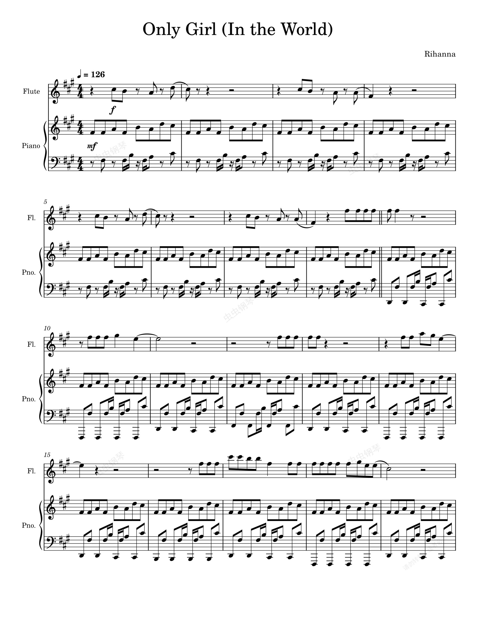 钢琴谱:蕾哈娜 Only Girl (In The World)-Rihanna