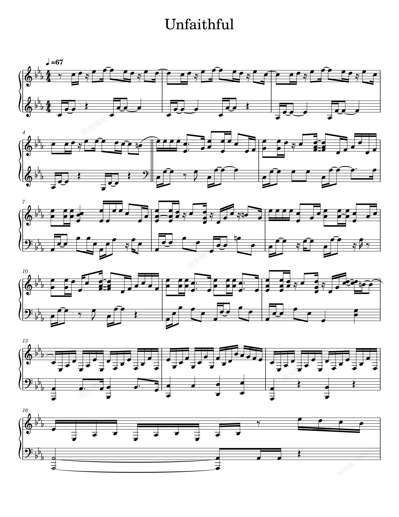 钢琴谱:蕾哈娜Rihanna-Unfaithful