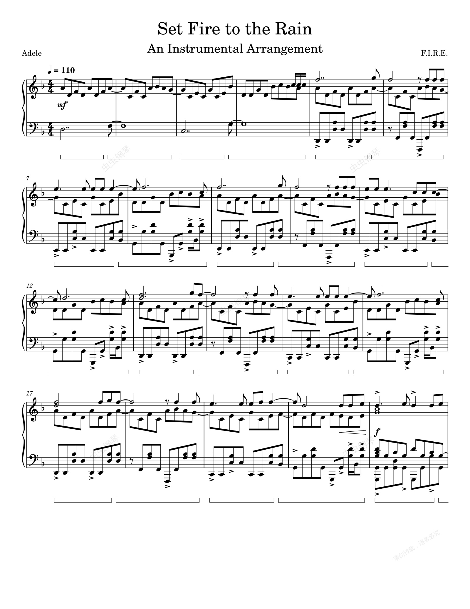 钢琴谱:阿黛尔-Adele-Set Fire to the Rain