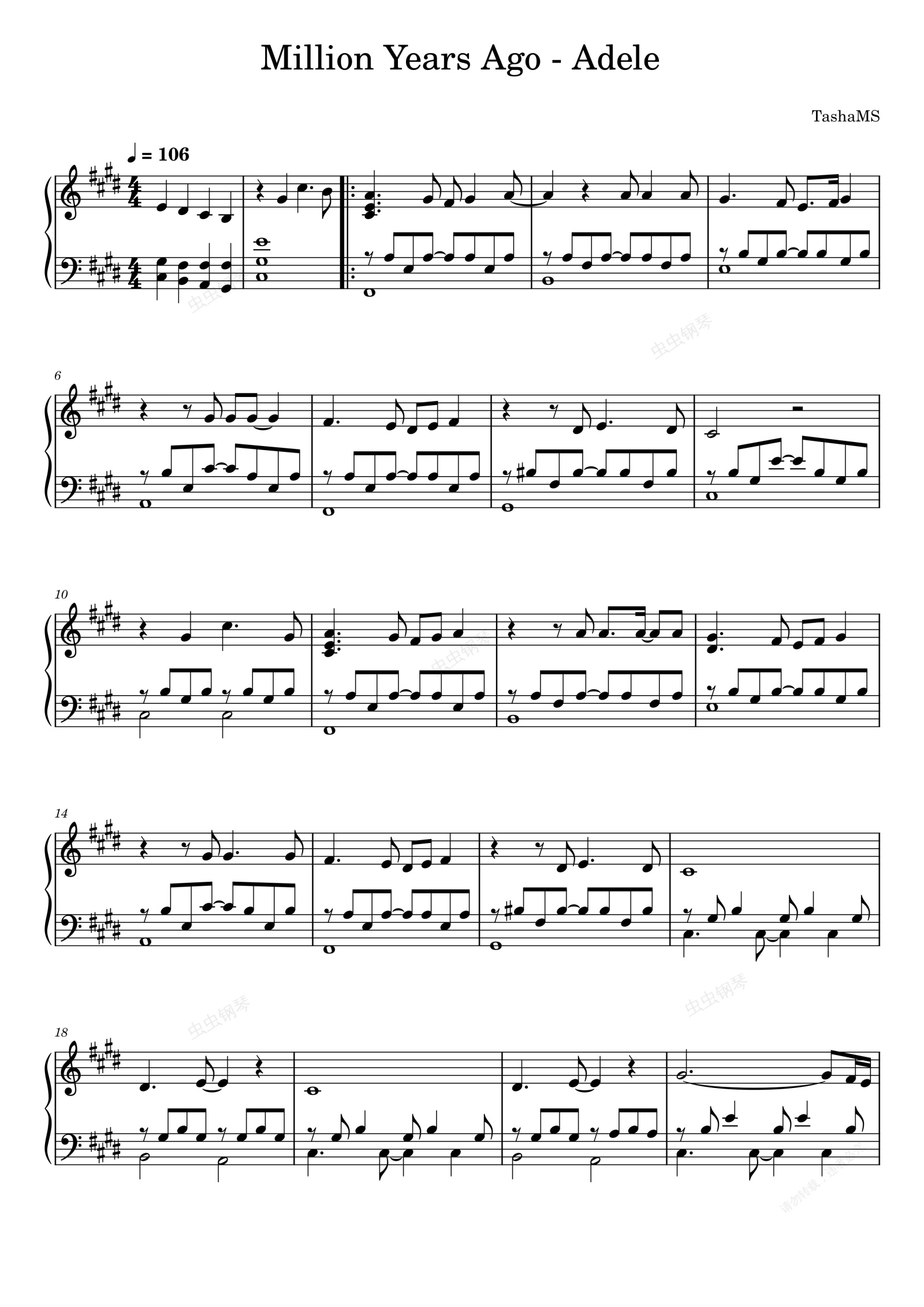 钢琴谱:阿黛尔Million Years Ago - Adele