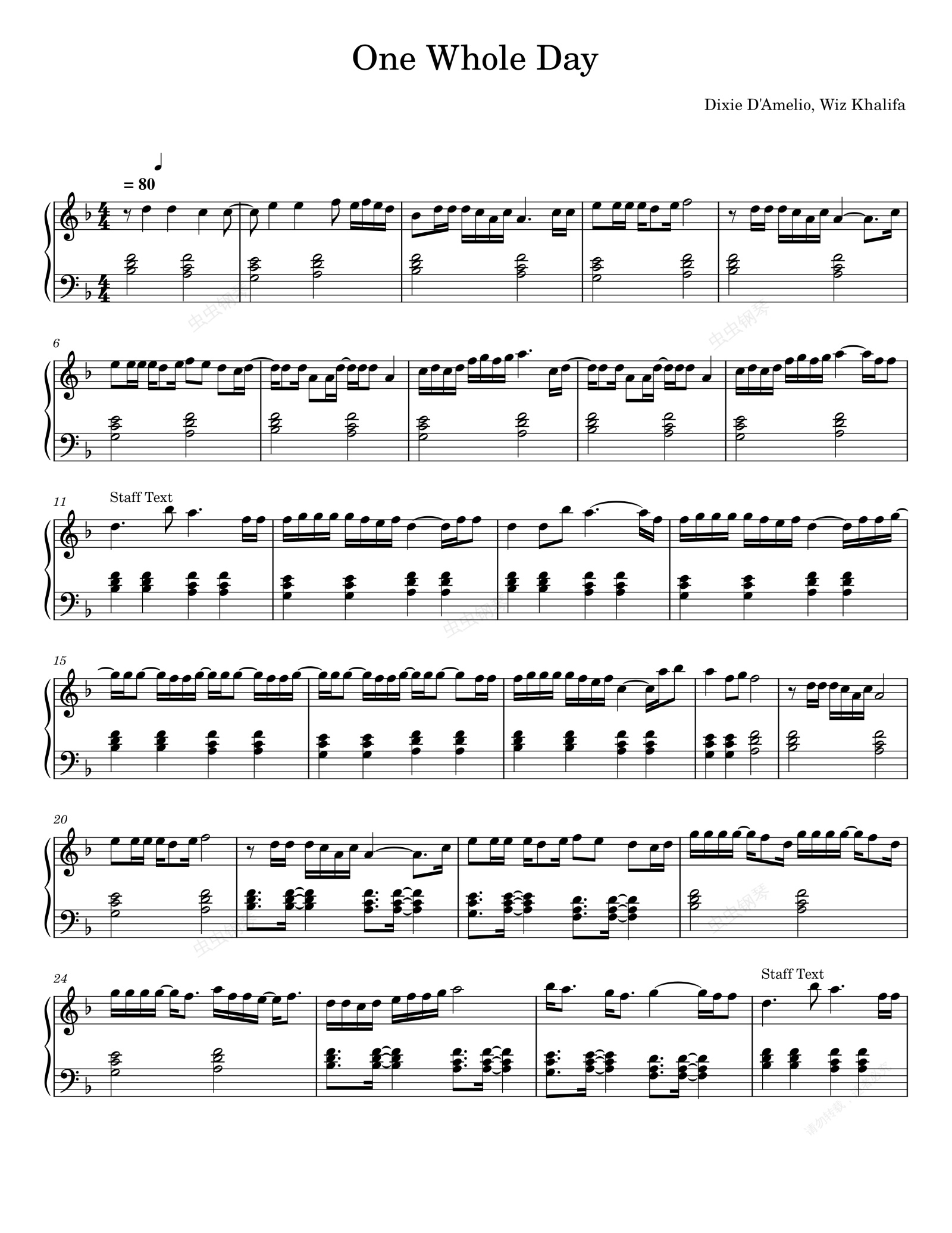 钢琴谱:One Whole Day-Dixie / Wiz Khalifa