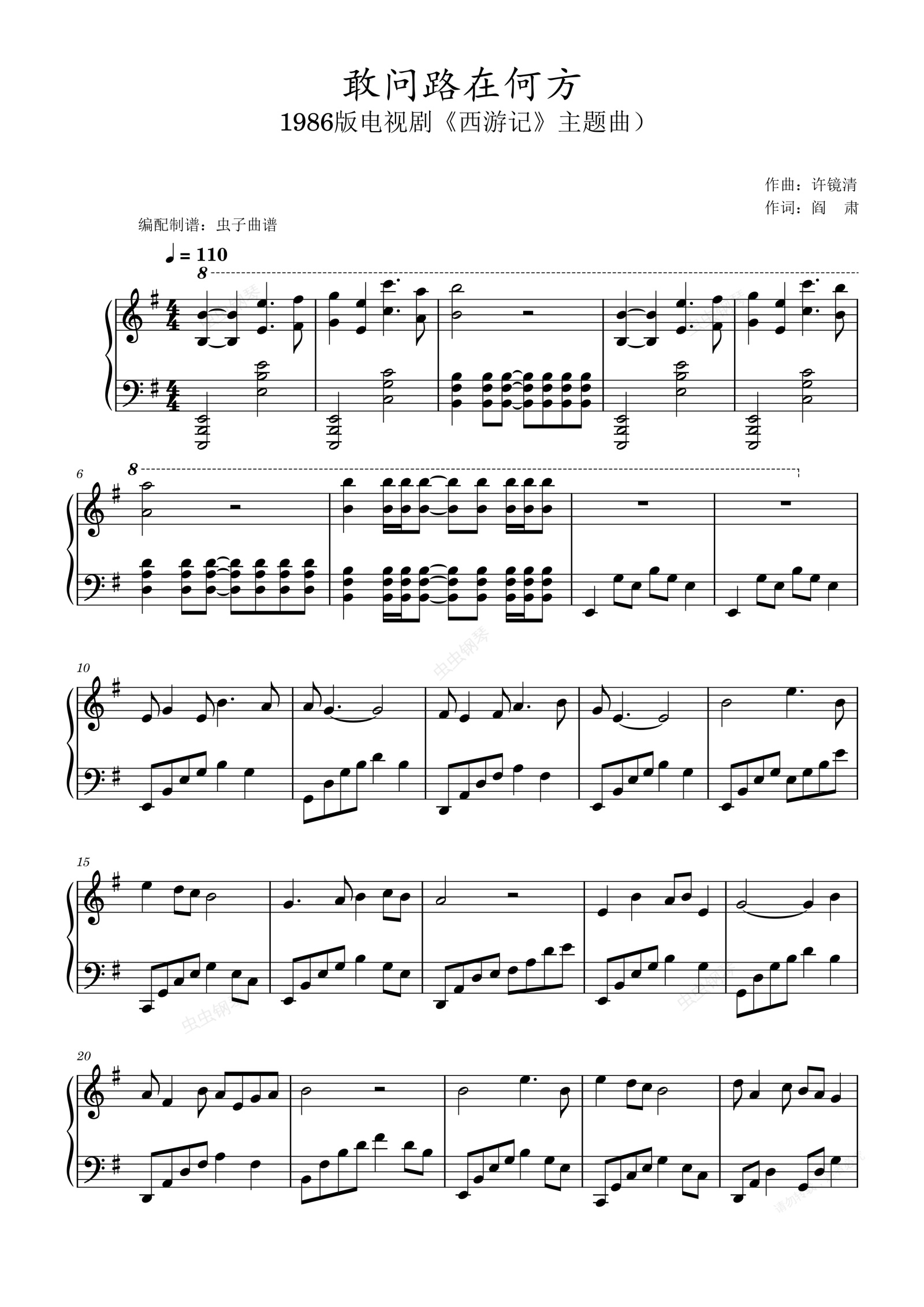 钢琴谱:敢问路在何方(原调编配,唯美抒情、1986版电视剧《西游记》主题曲)