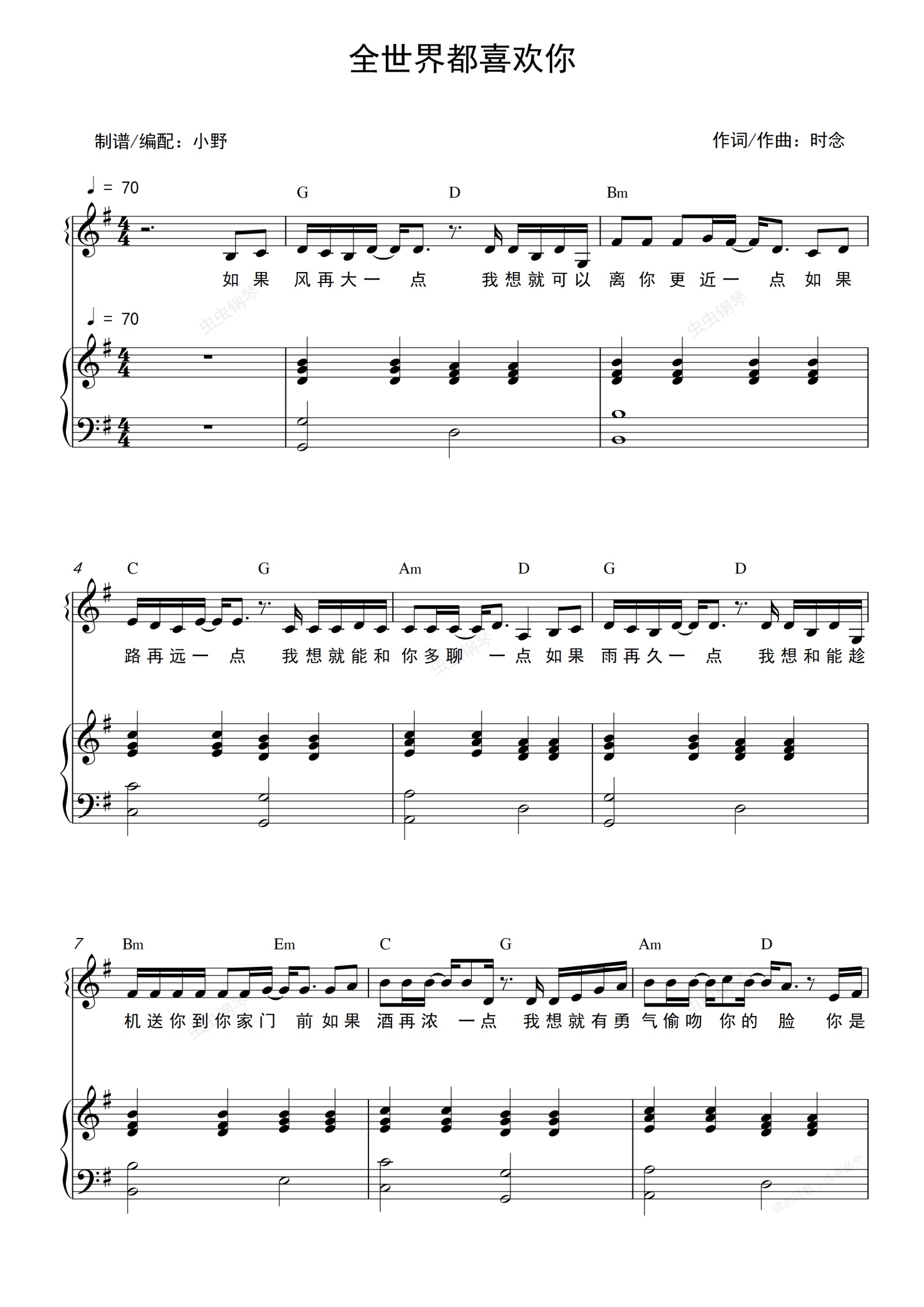 钢琴谱:全世界都喜欢你(和弦弹唱版)