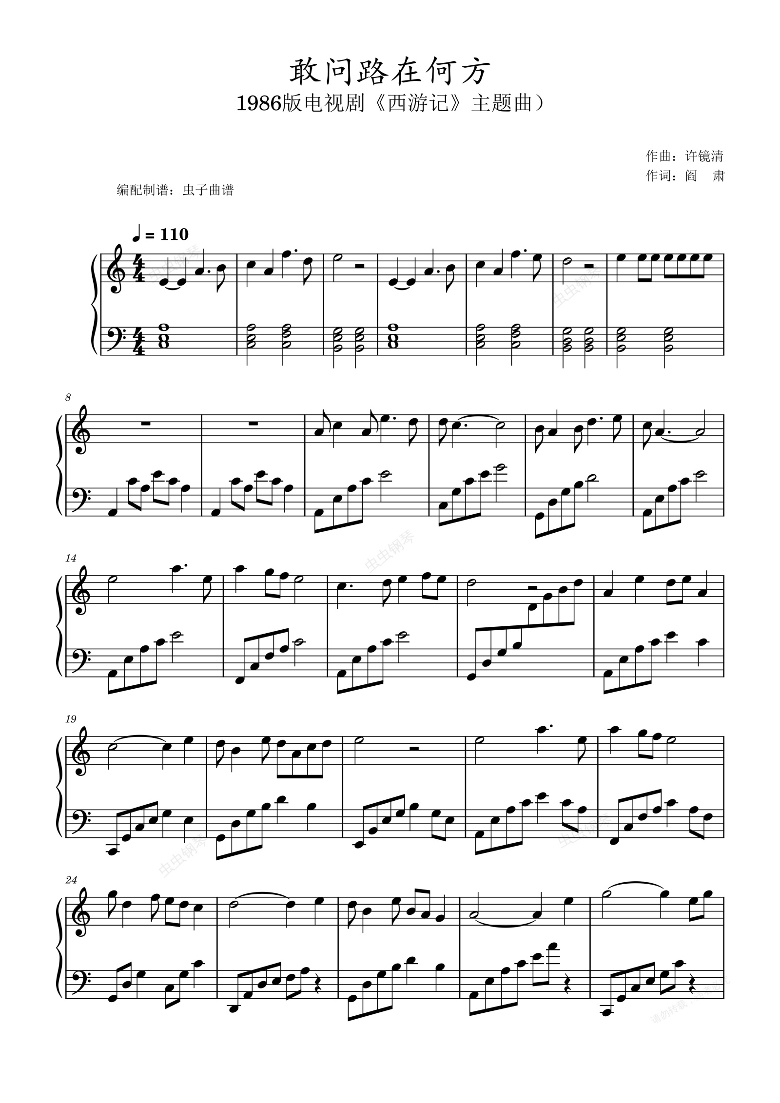 钢琴谱:敢问路在何方(精简编配,适合新手,成人学习弹奏)