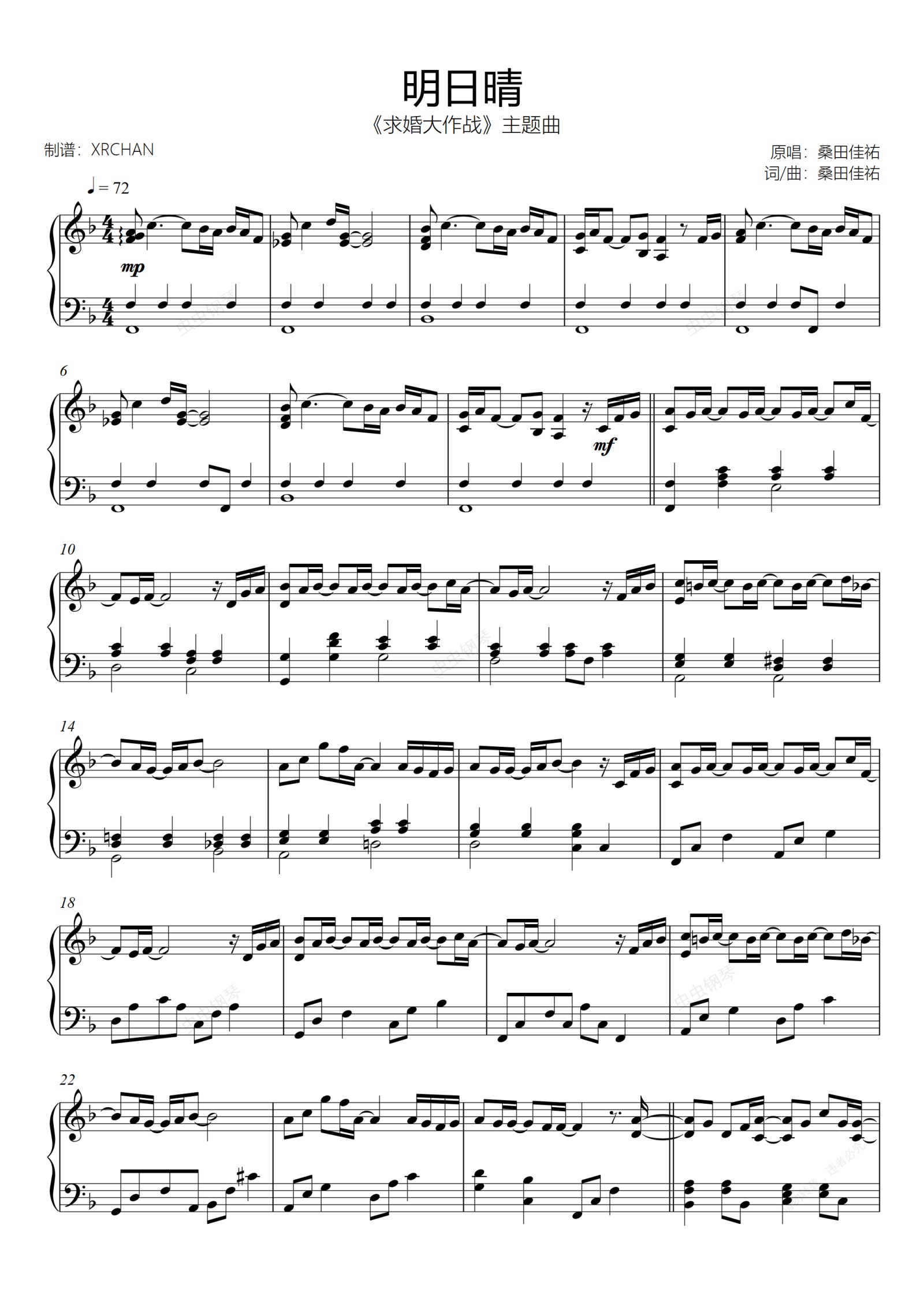 钢琴谱:《求婚大作战》主题曲 「明日晴」初级