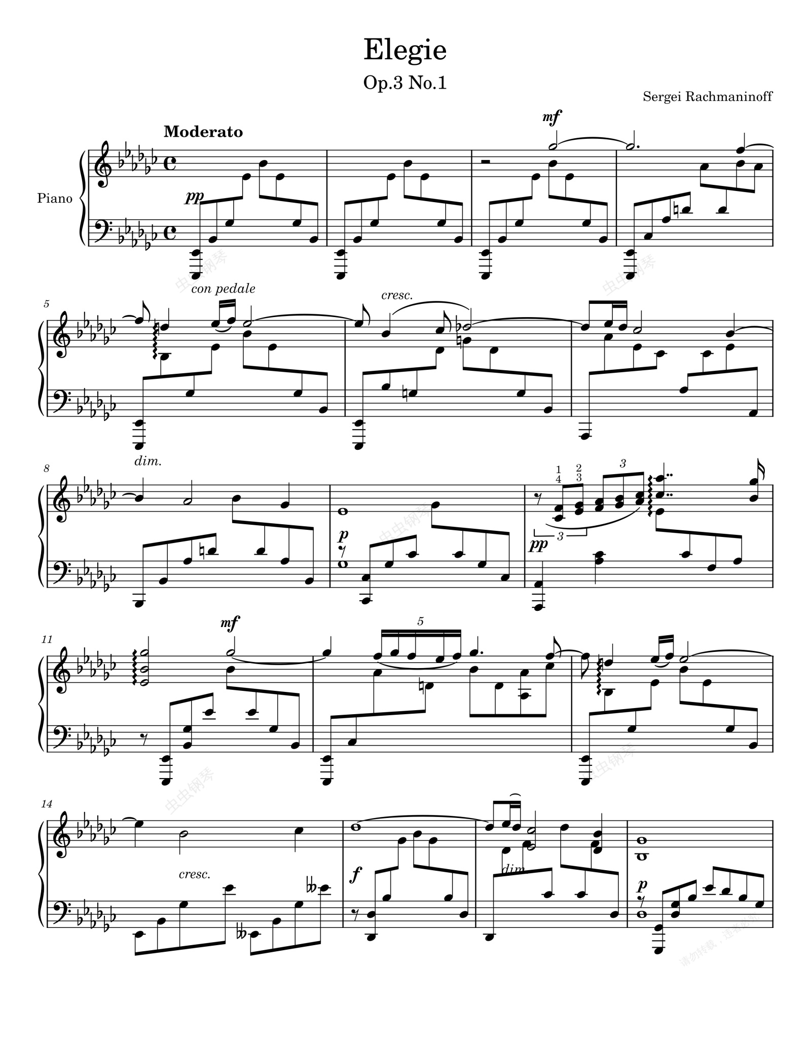 钢琴谱:Rachmaninoff, Elegy Op 3 No 1 拉赫玛尼诺夫