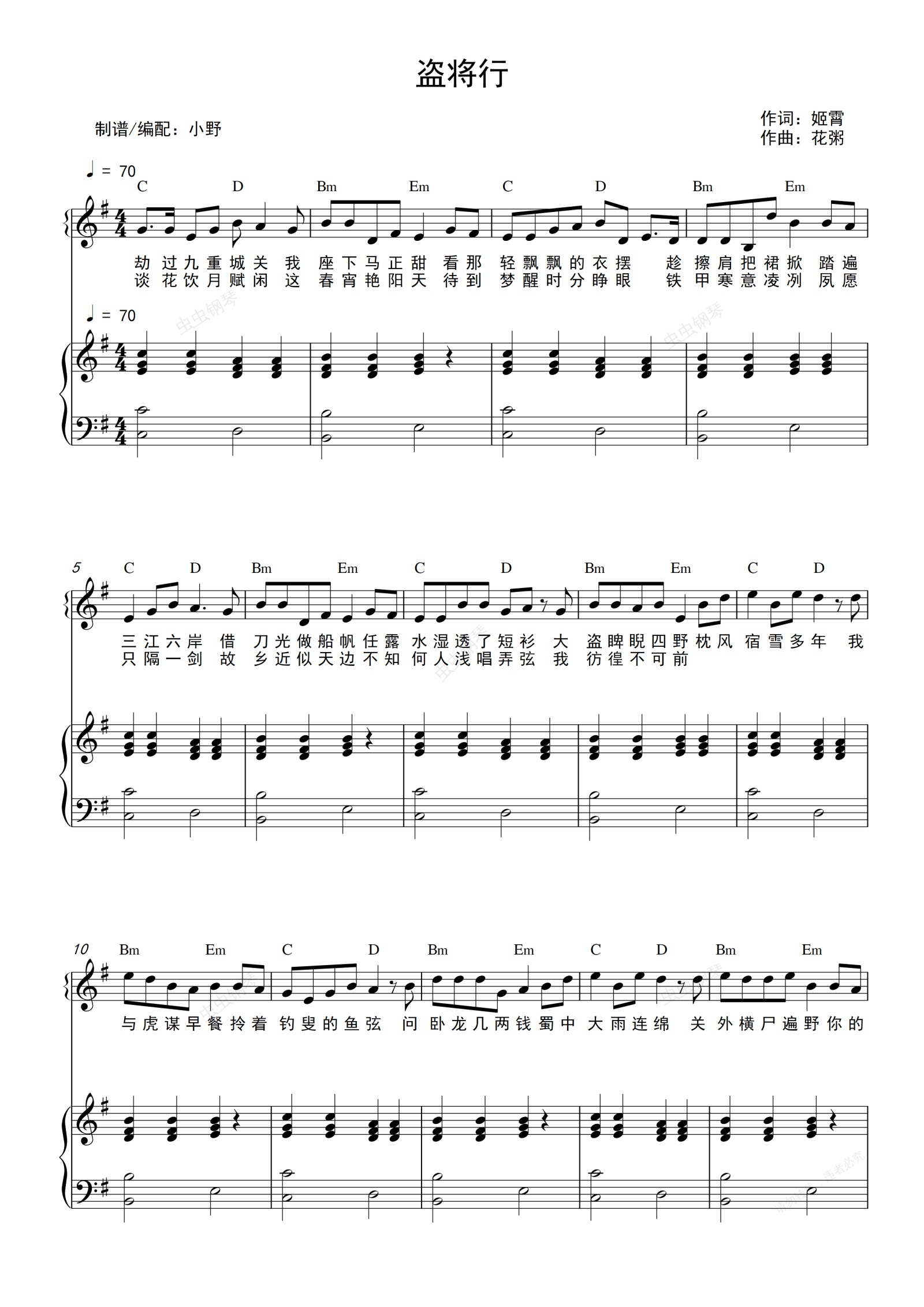 钢琴谱:盗将行(和弦弹唱版)