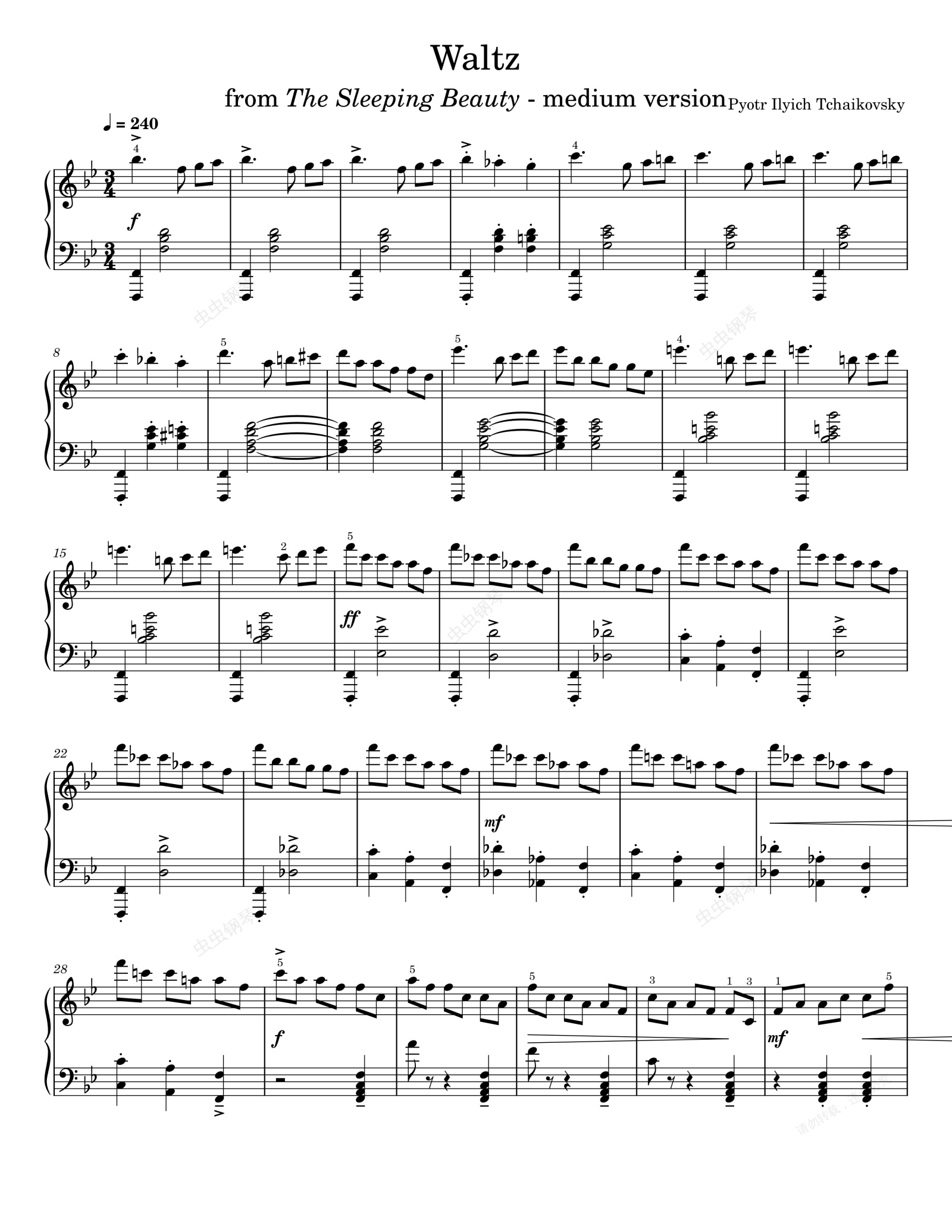 钢琴谱:睡美人圆舞曲 Tchaikovsky - Waltz from The Sleeping Beauty (Full Piano Solo) (*Deprecated*)