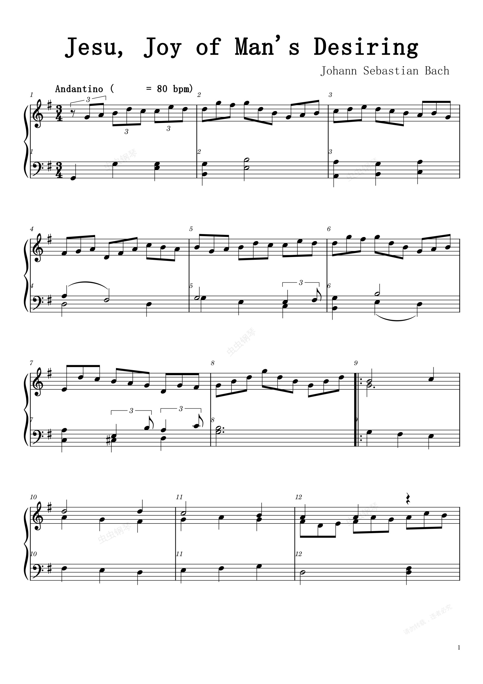 钢琴谱:巴赫-Jesu, Joy of Man's Desiring