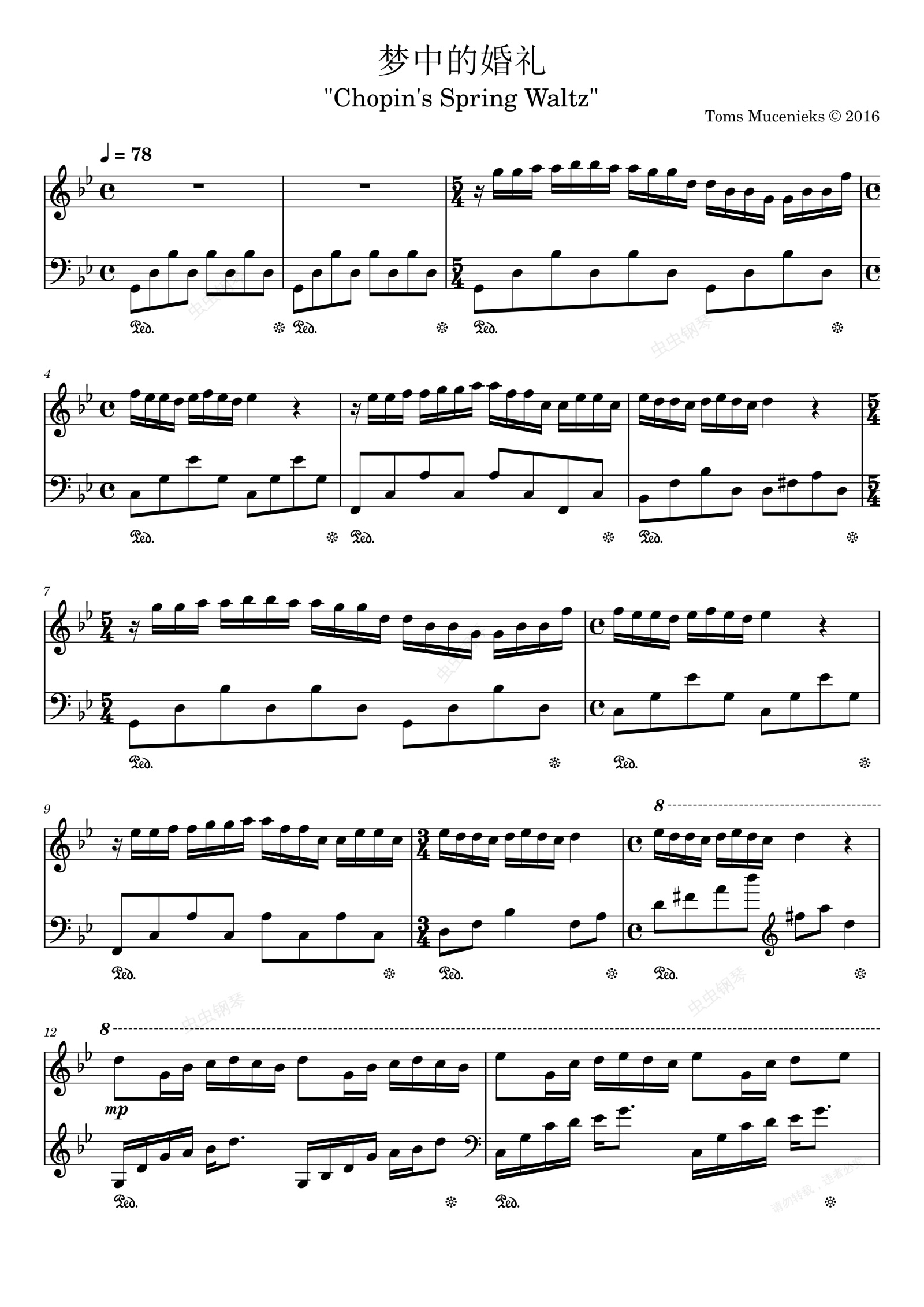 钢琴谱:梦中的婚礼 Paul de Senneville - Mariage d'Amour