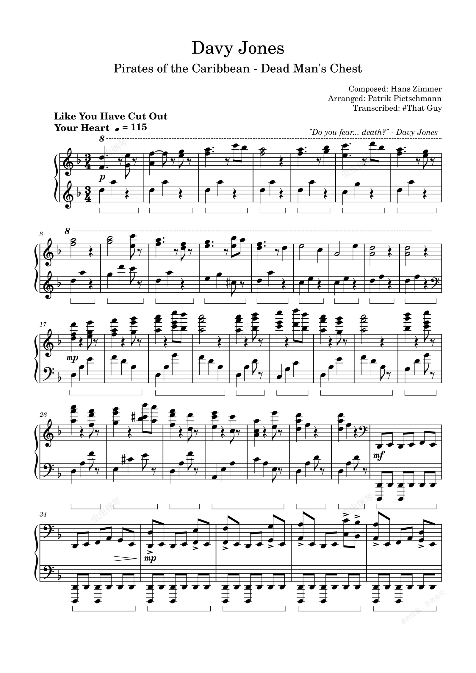 钢琴谱:加勒比海盗 Pirates of the Caribbean - Dead Man’s Chest - Davy Jones