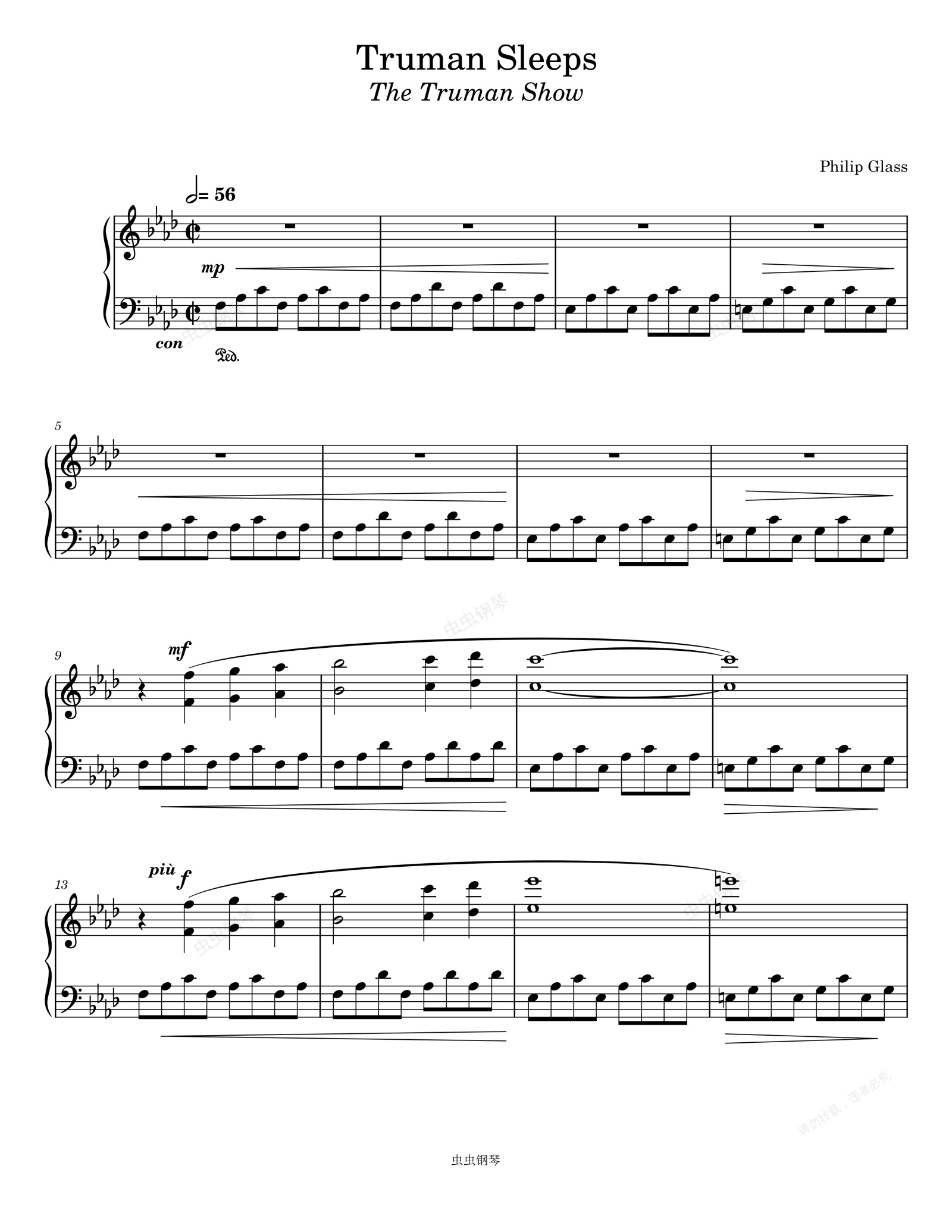 钢琴谱:楚门的世界 电影 Truman Sleeps