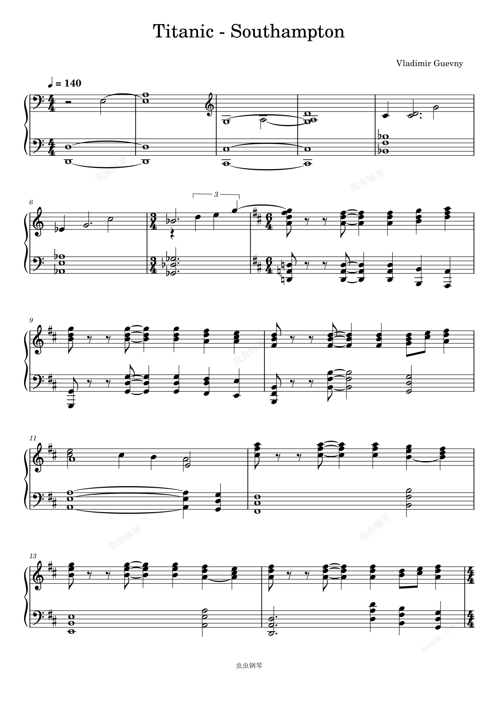 钢琴谱:泰坦尼克号 电影-Southampton-James Horner