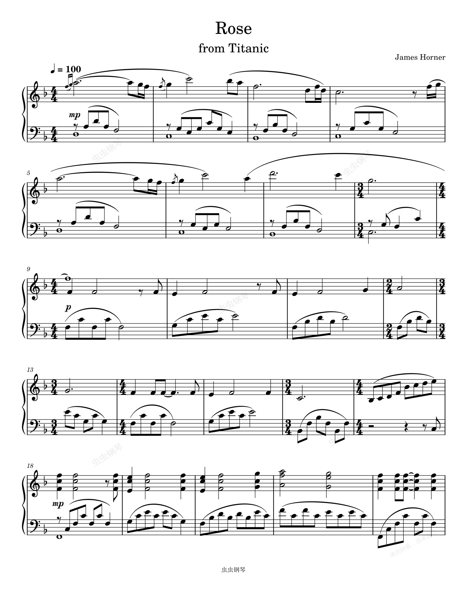 钢琴谱:泰坦尼克号 电影 Rose-James Horner