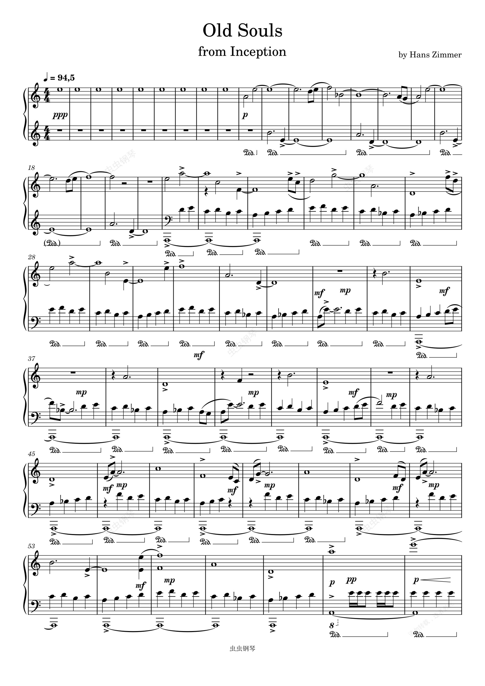 钢琴谱:星际穿越 电影 Old Souls-Hans Zimmer