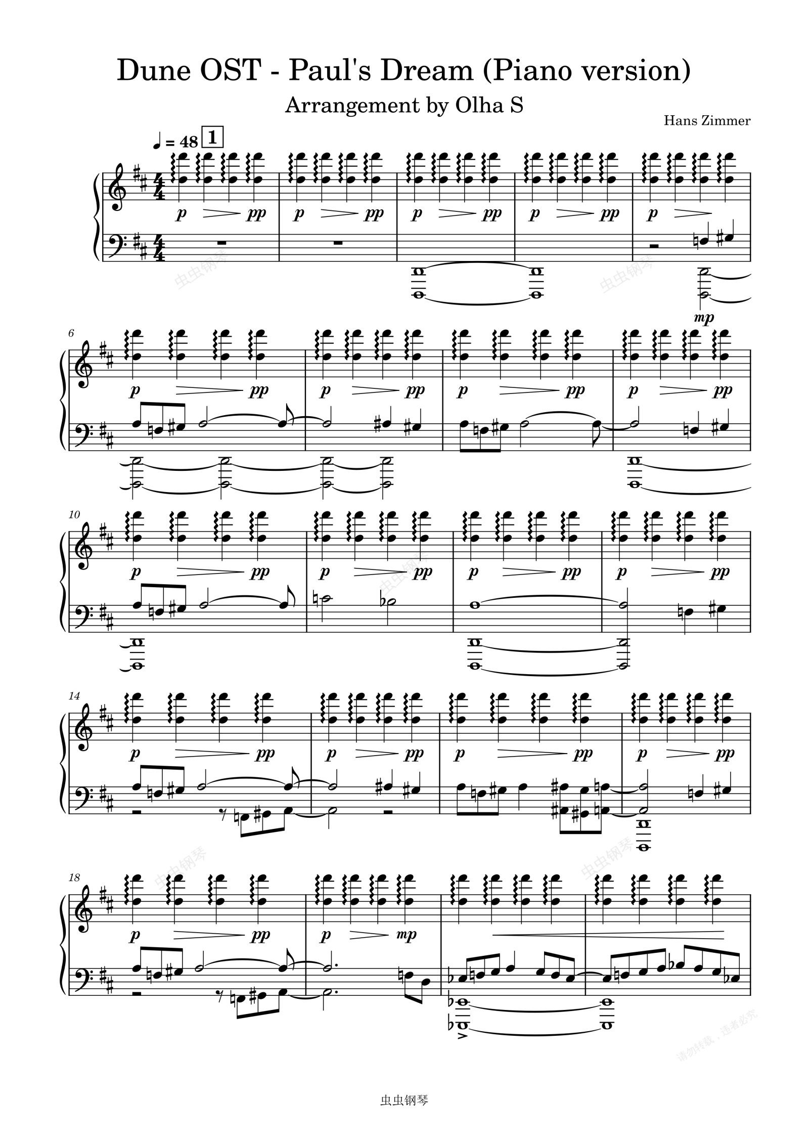 钢琴谱:沙丘 电影 Paul's Dream-Hans Zimmer