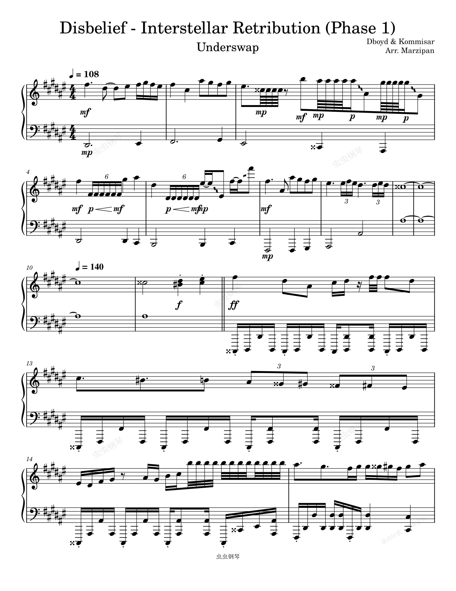 钢琴谱:Underswap 游戏 Interstellar Retribution