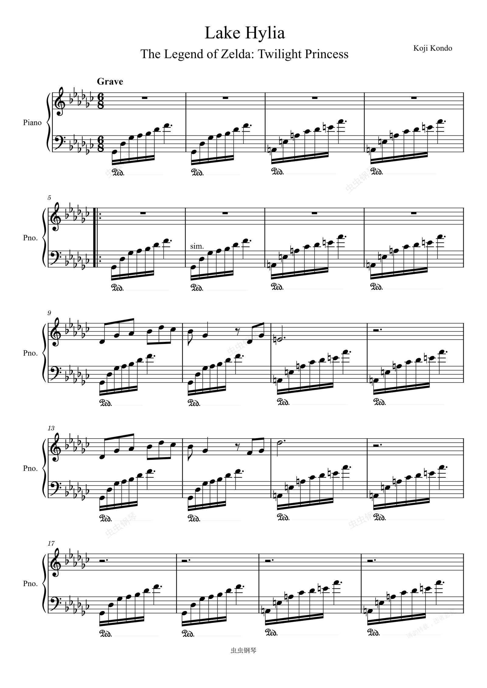钢琴谱:塞尔达传说 黄昏公主 游戏Lake Hylia