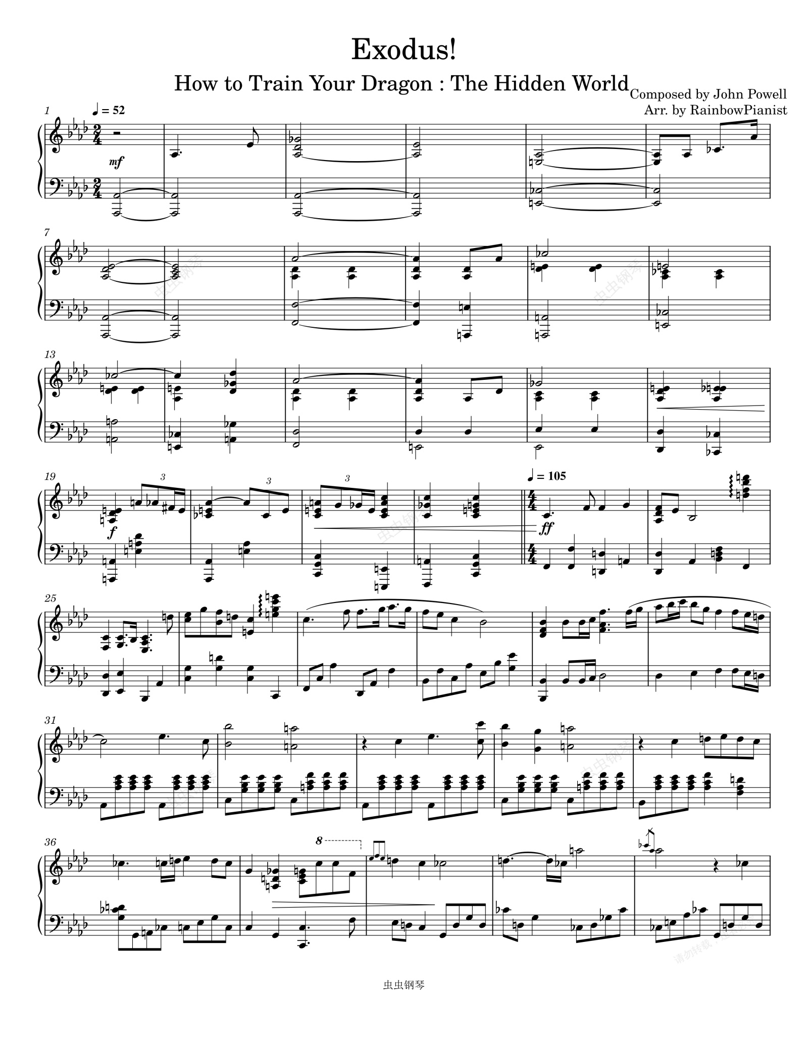 钢琴谱:驯龙高手3:隐秘的世界 电影 Exodus!