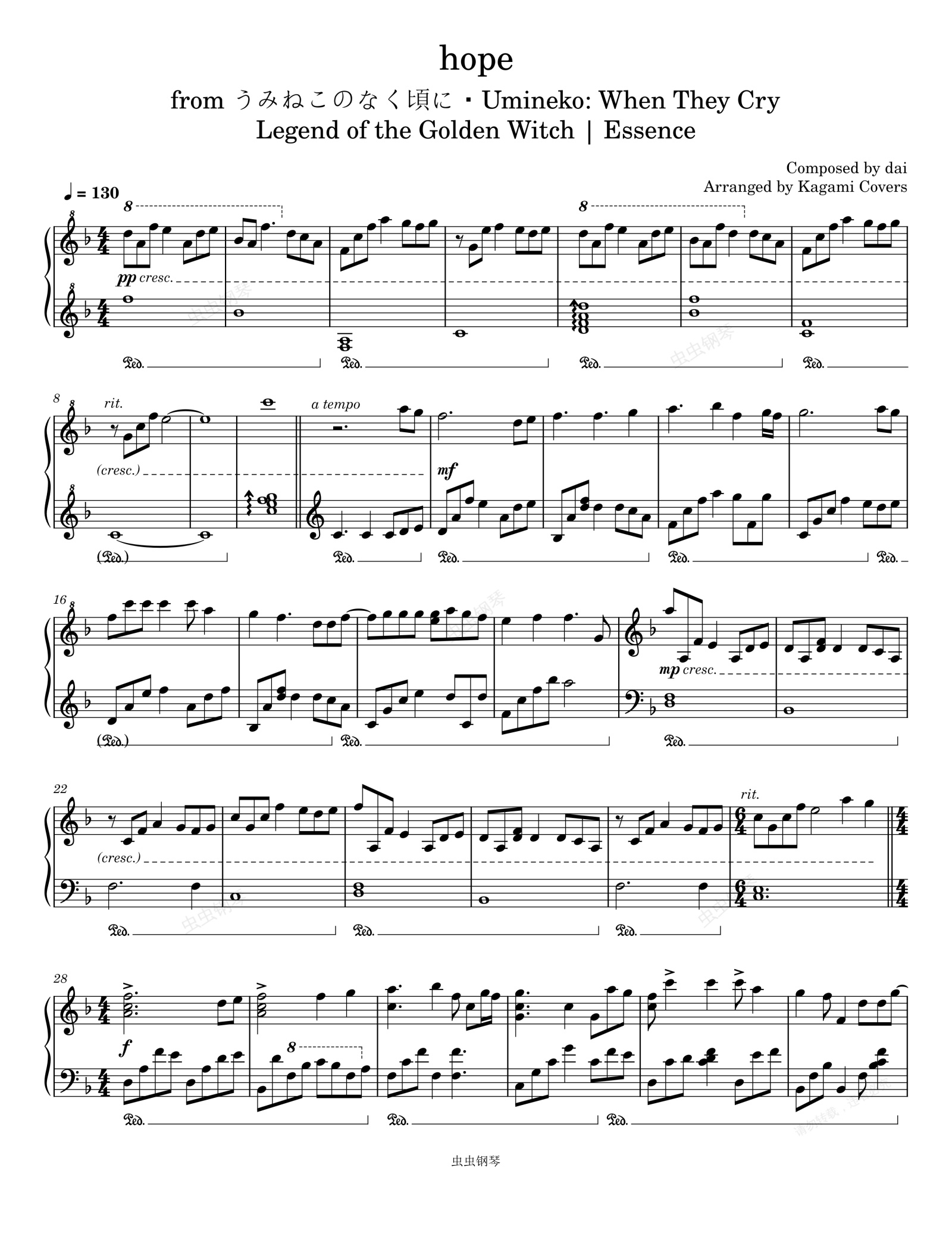 钢琴谱:海猫鸣泣之时 游戏-hope-dai
