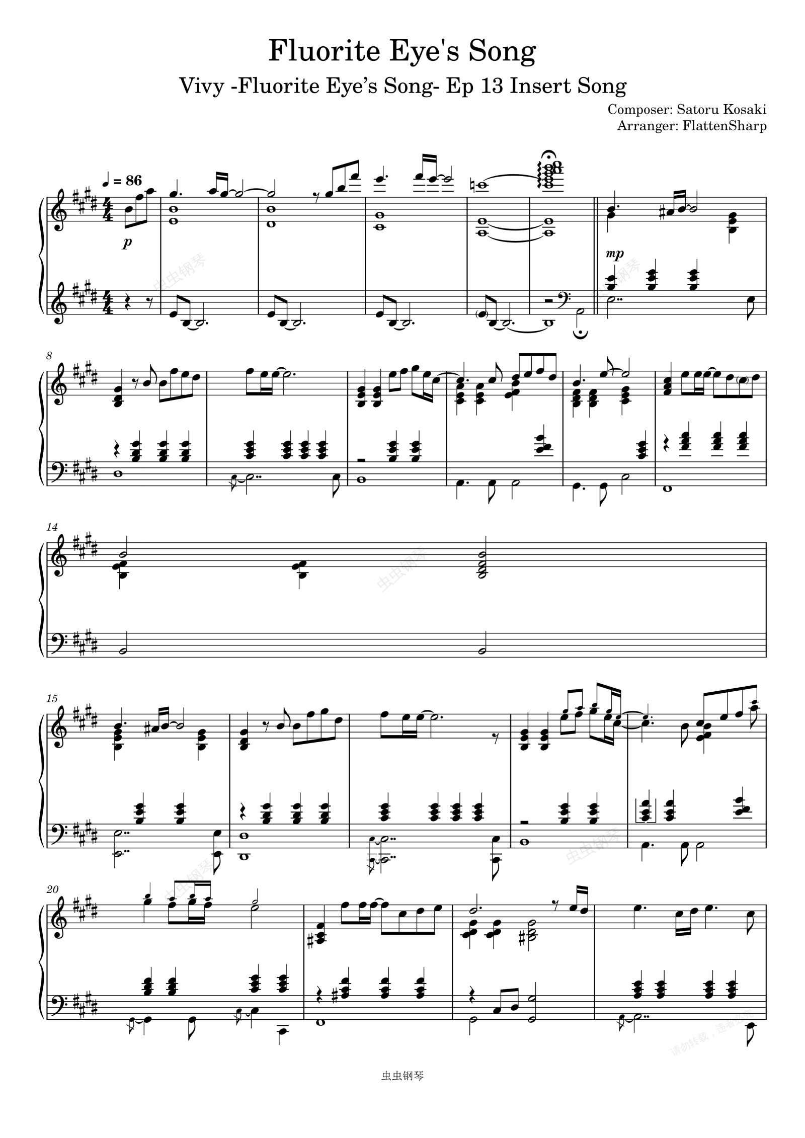 钢琴谱:Vivy -Fluorite Eye's Song- 动画 Fluorite Eye's Song