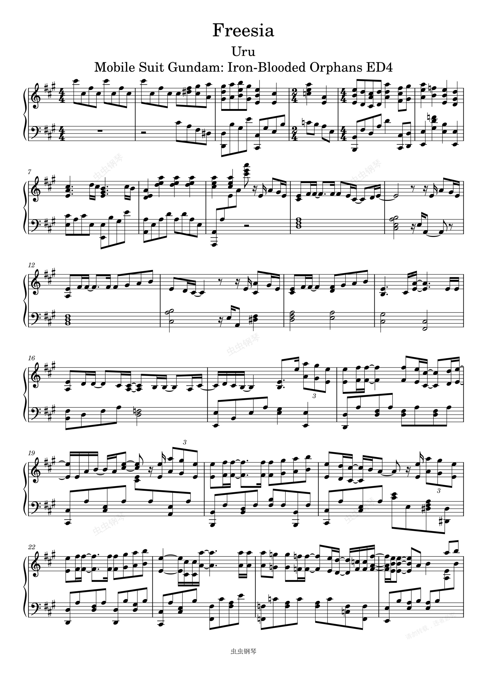 钢琴谱:机动战士高达 动画 Freesia/フリージア