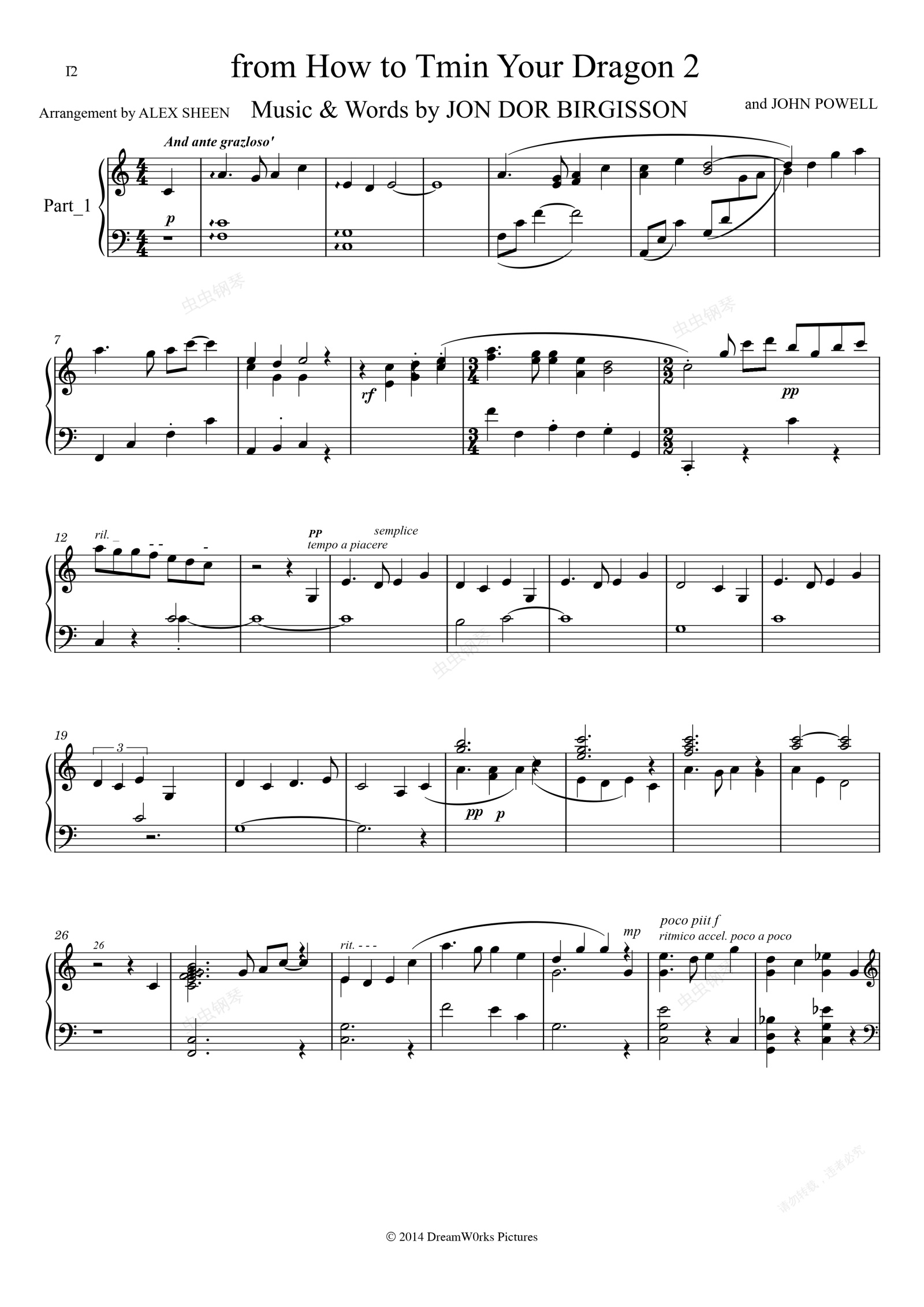 钢琴谱:How to Tmin Your Dragon-JON DOR BIRGISSON