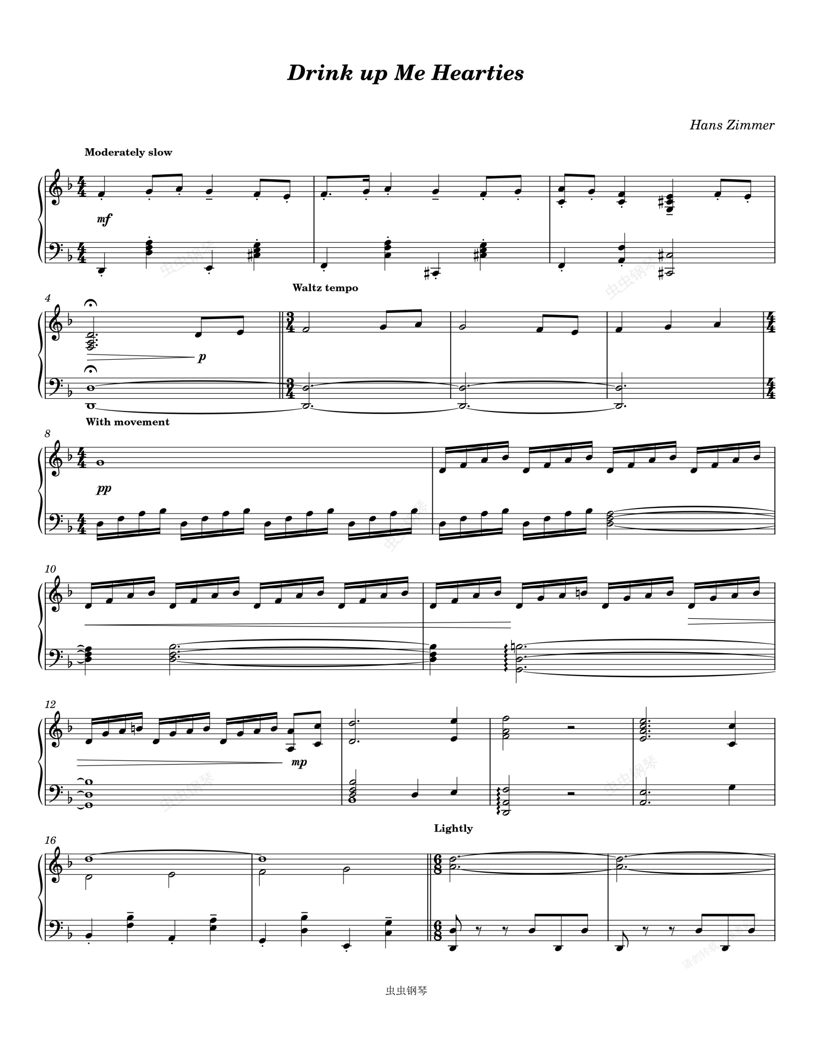 钢琴谱:加勒比海盗 电影 Drink Up Me Hearties- Hans Zimmer